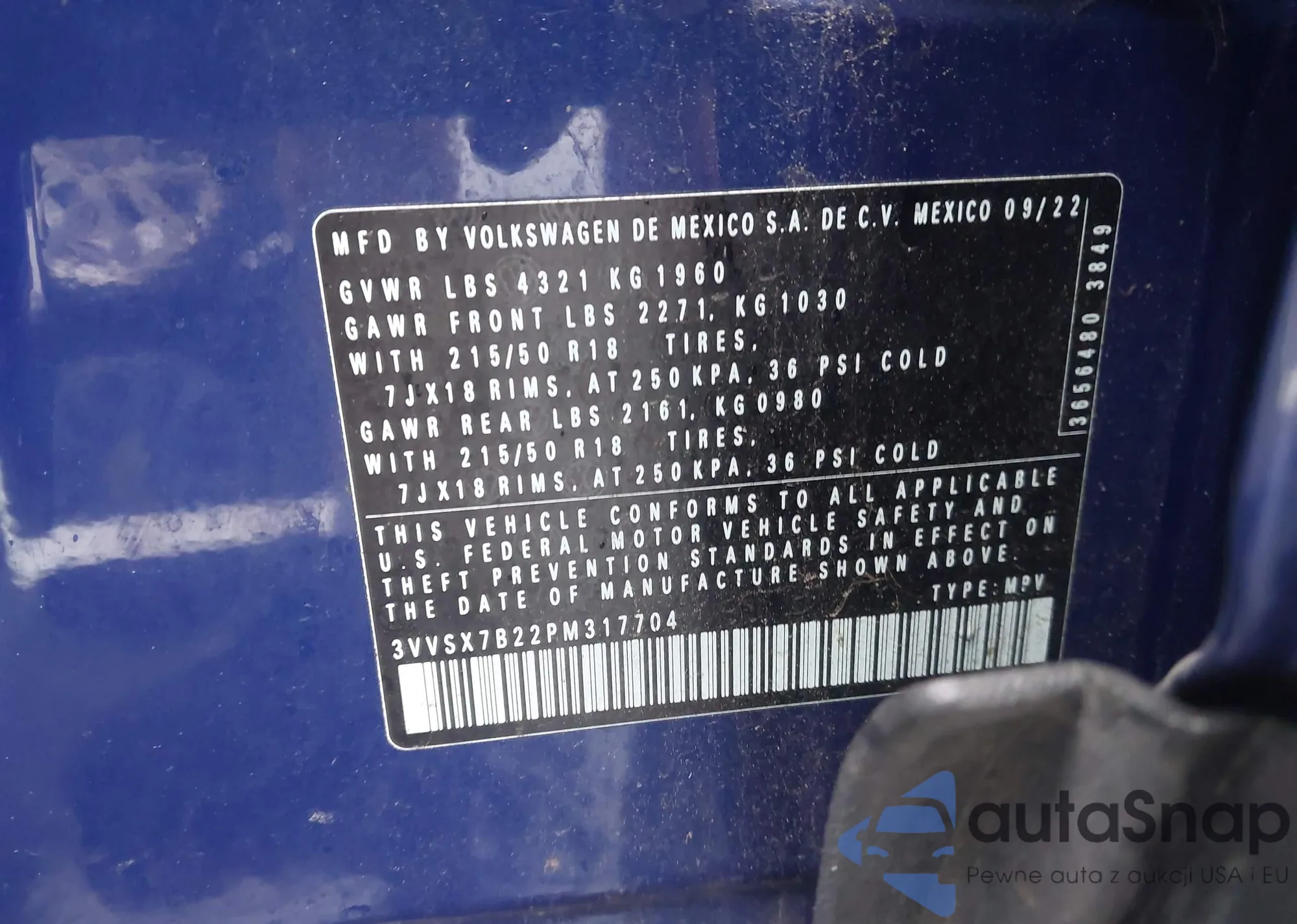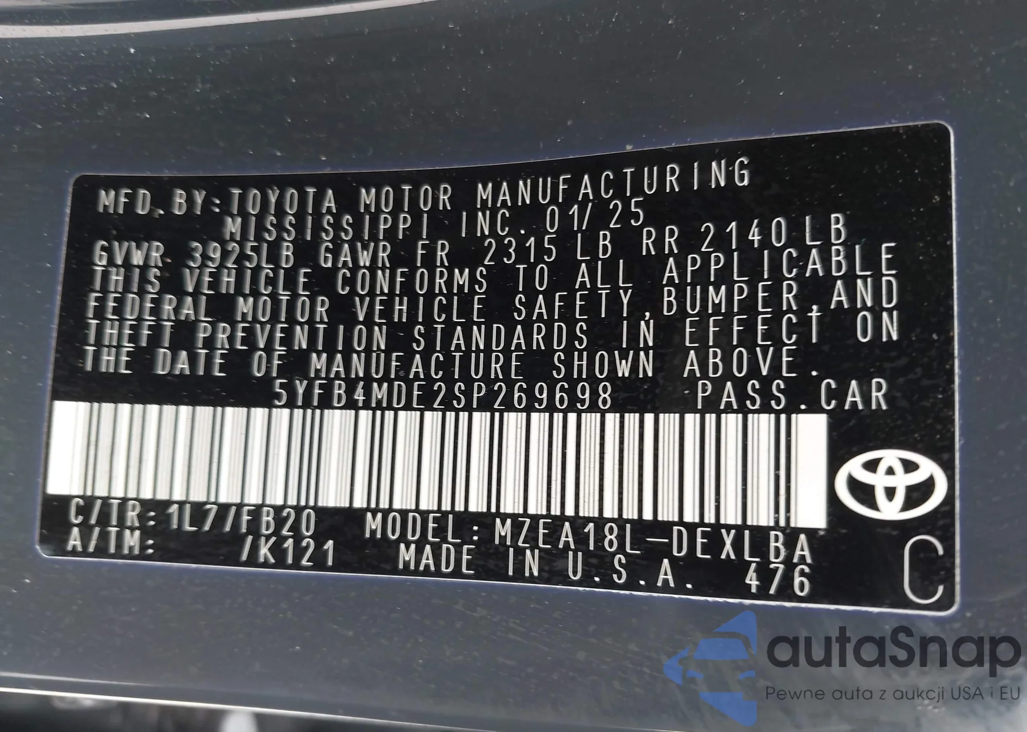 • VIN 5YFB4MDE2SP269698