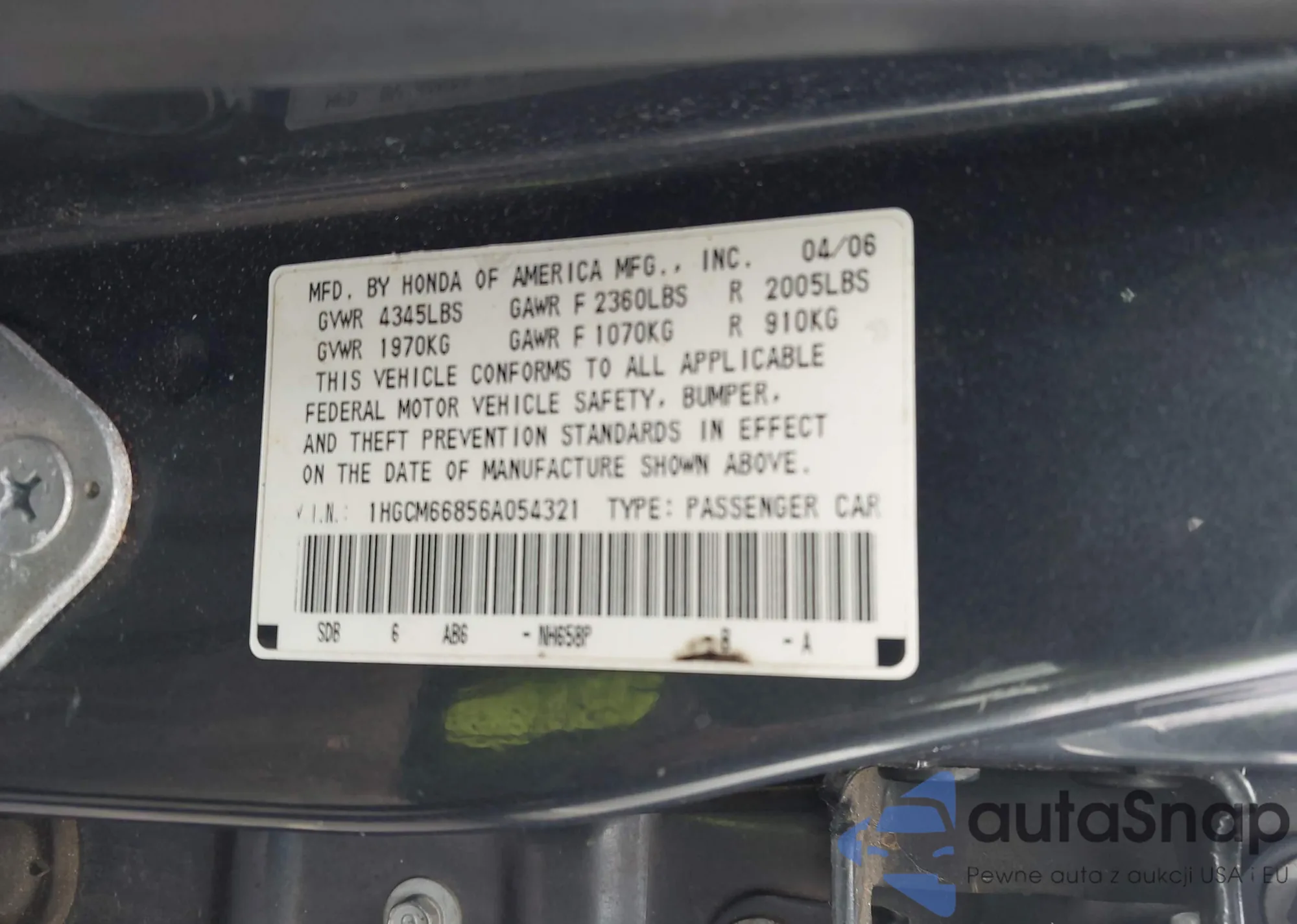 LOT: 42981915 VIN: JHMED8353MS006853
