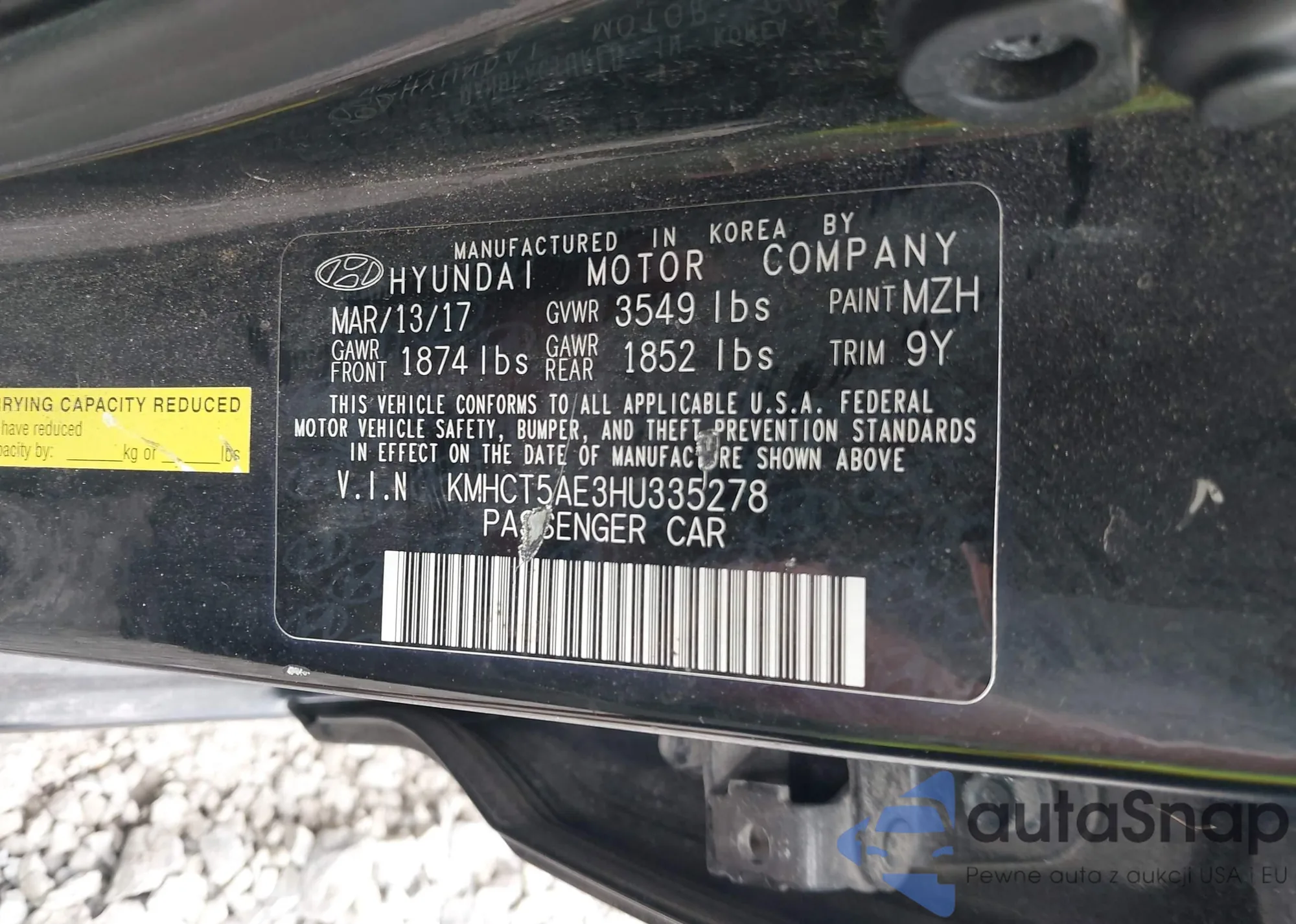 LOT: 42906701 VIN: KMHCT5AE3HU335278
