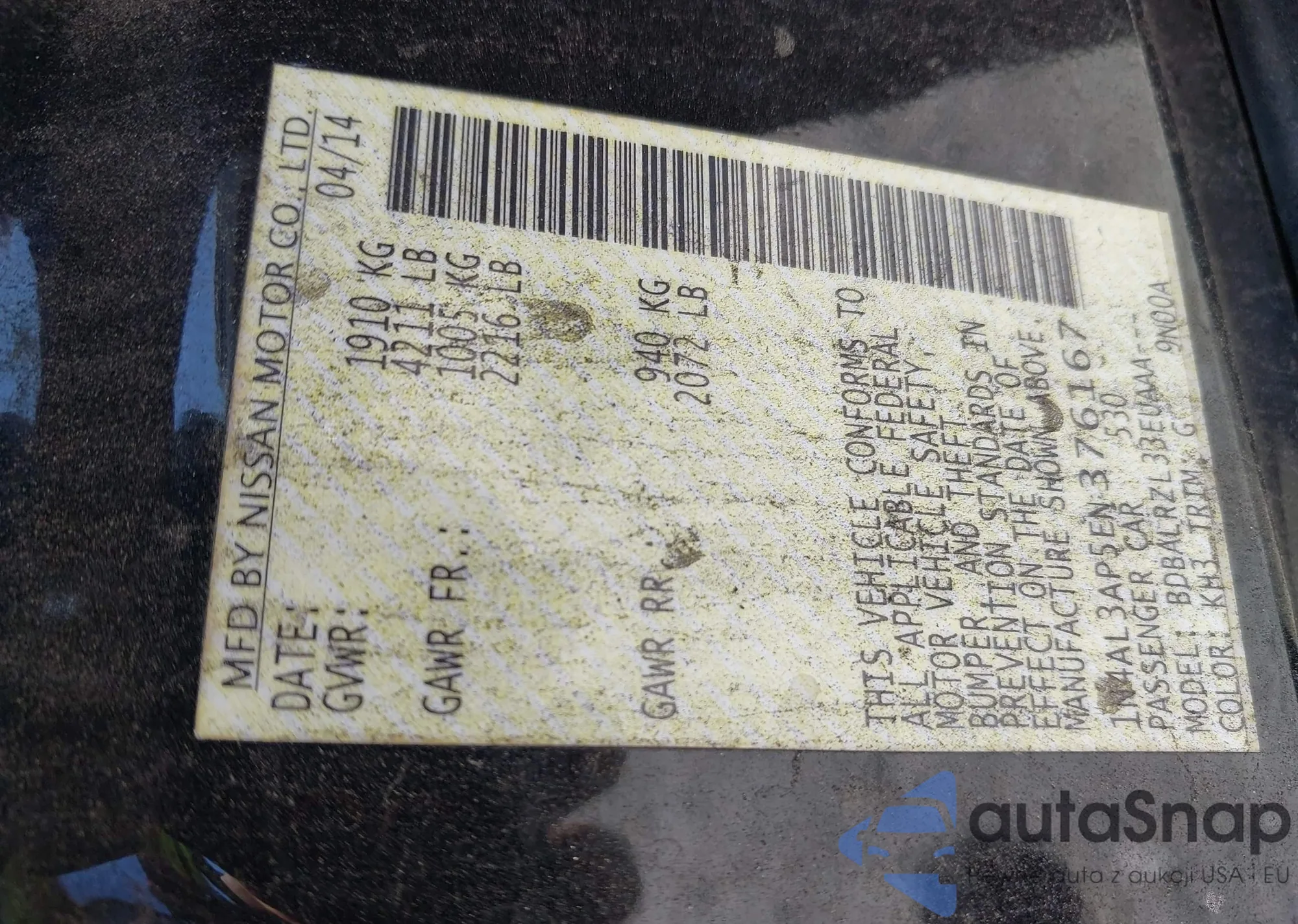 • VIN 1N4AL3AP5EN376167