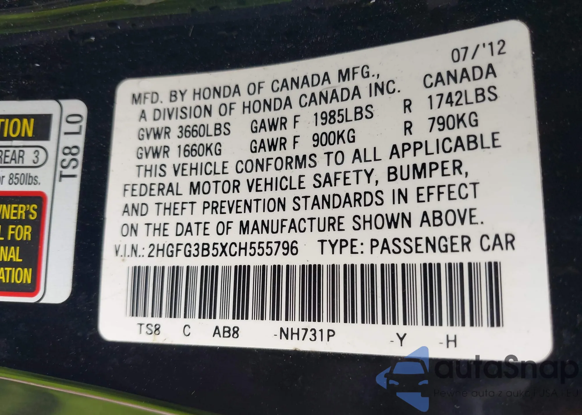 • VIN 2HGFG3B5XCH555796