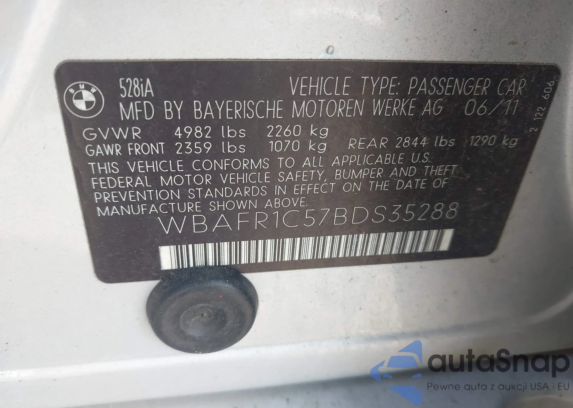 • VIN WBAFR1C57BDS35288