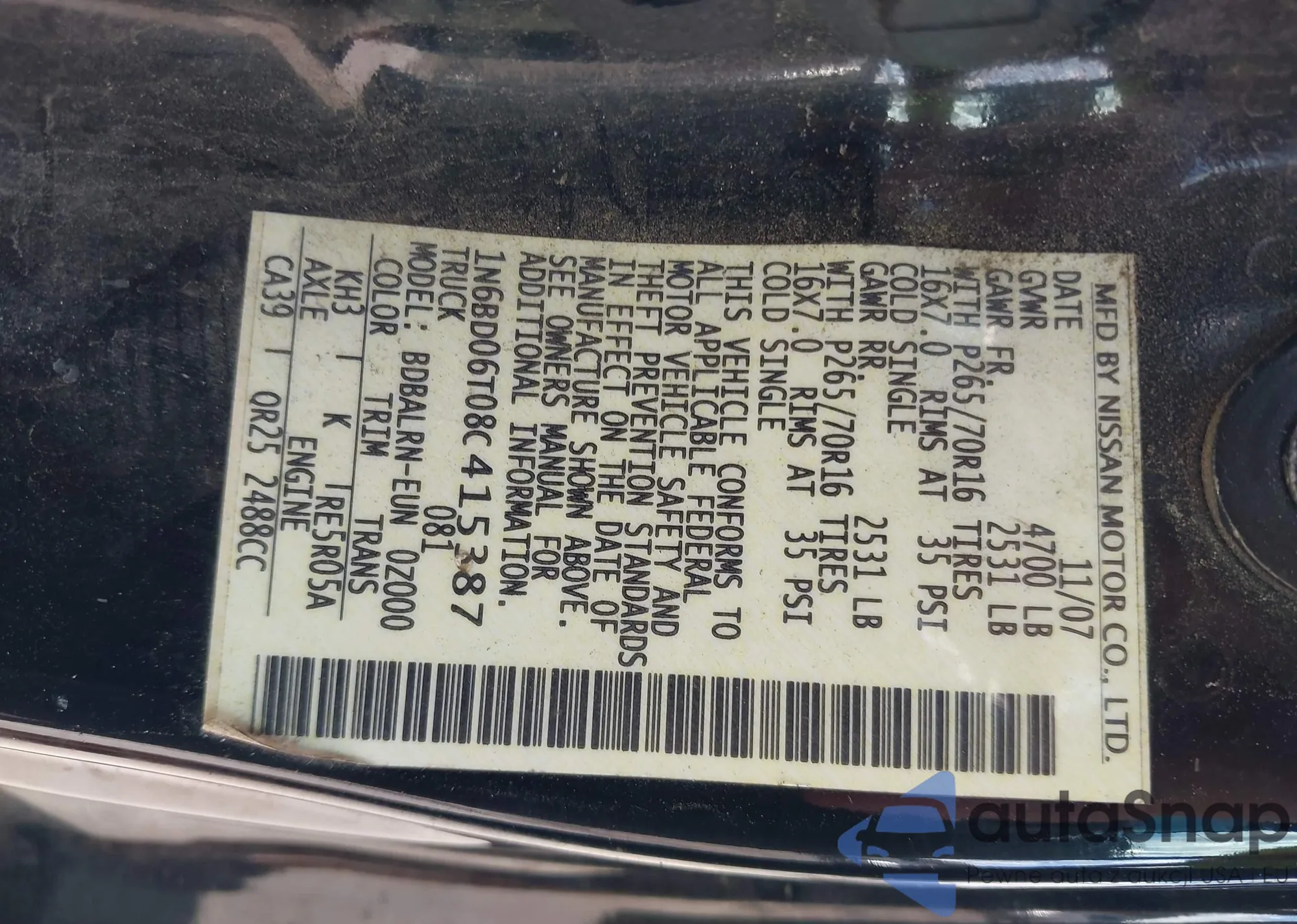LOT: 40456910 VIN: 1N6BD06T08C415387