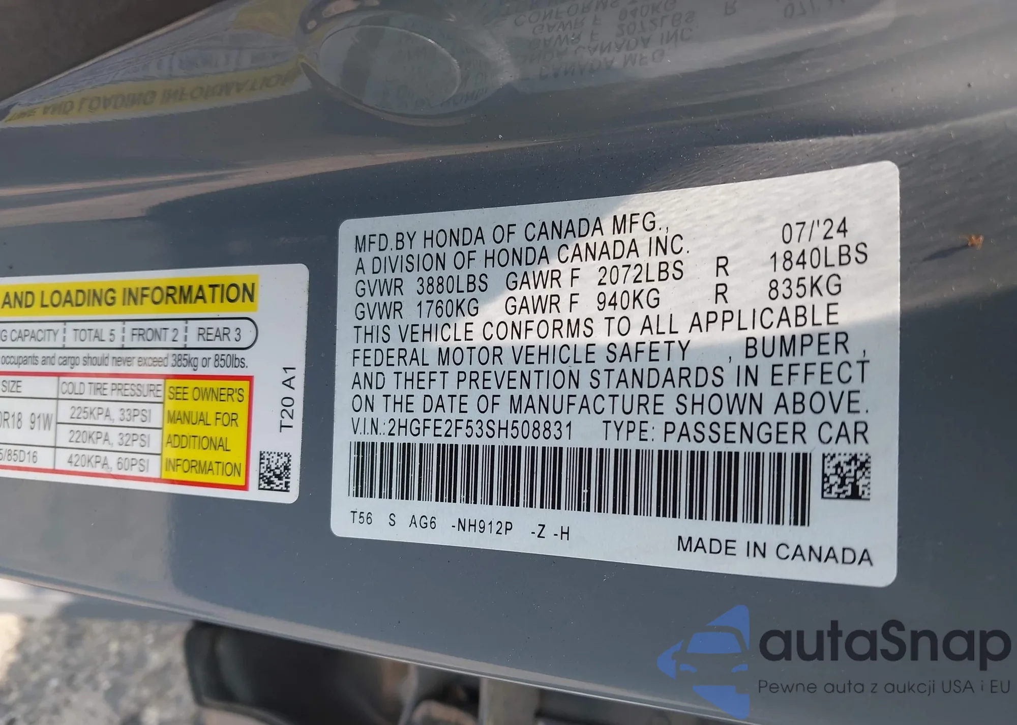 • VIN 2HGFE2F53SH508831