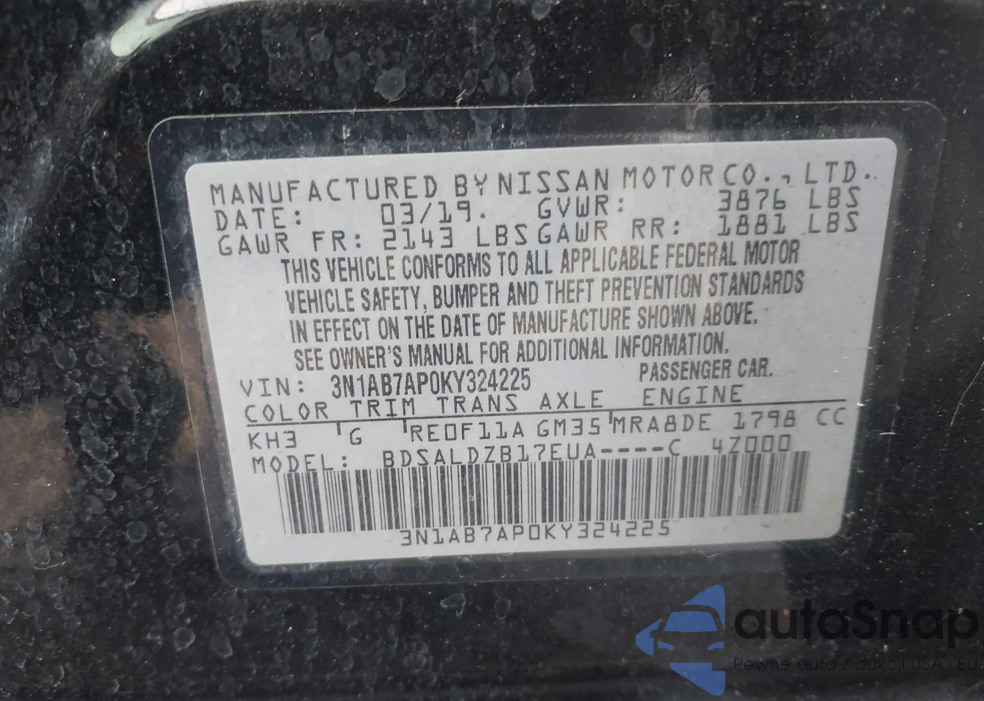 • VIN 3N1AB7AP0KY324225