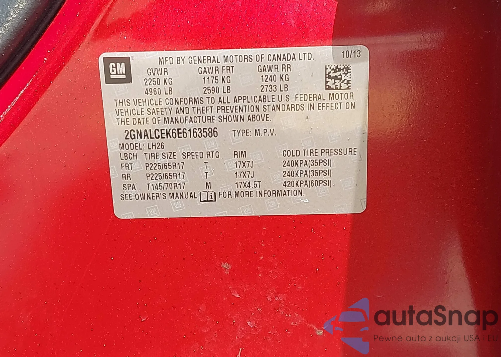 LOT: 42821925 VIN: 2GNALCEK6E6163586