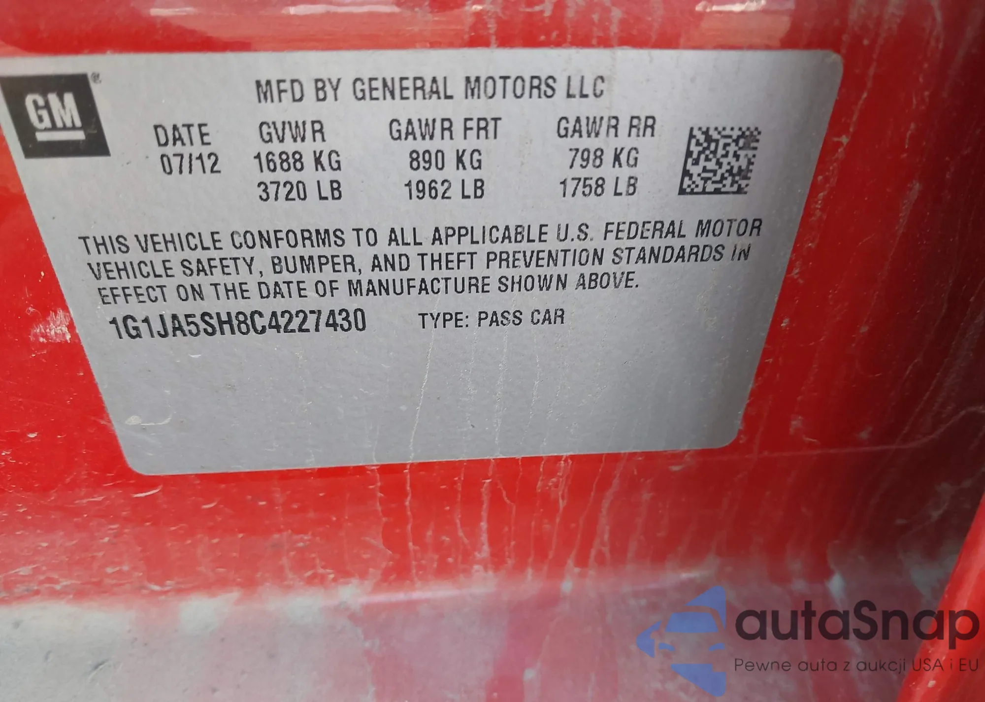 • VIN 1G1JA5SH8C4227430