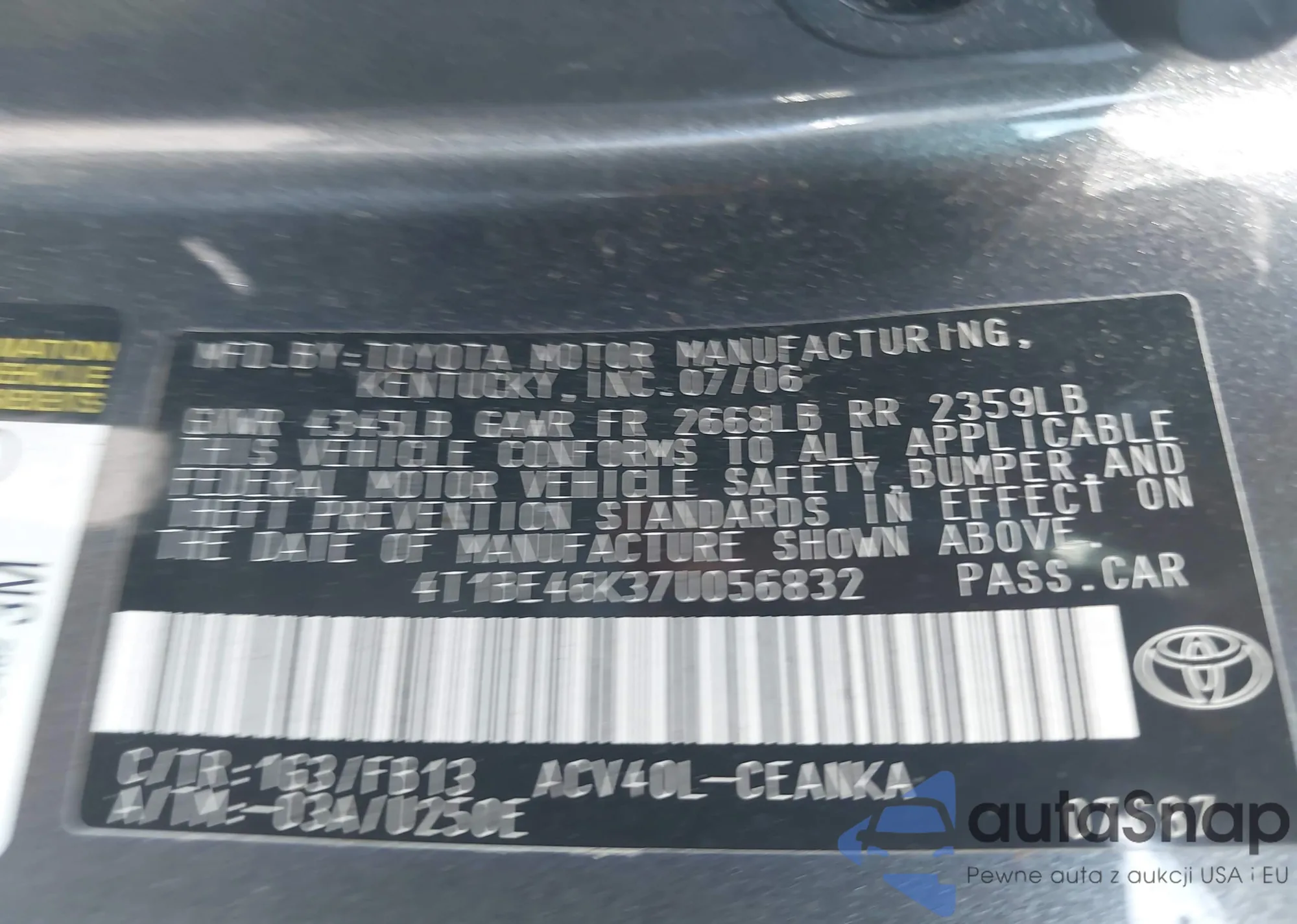 • VIN 4T1BE46K37U056832