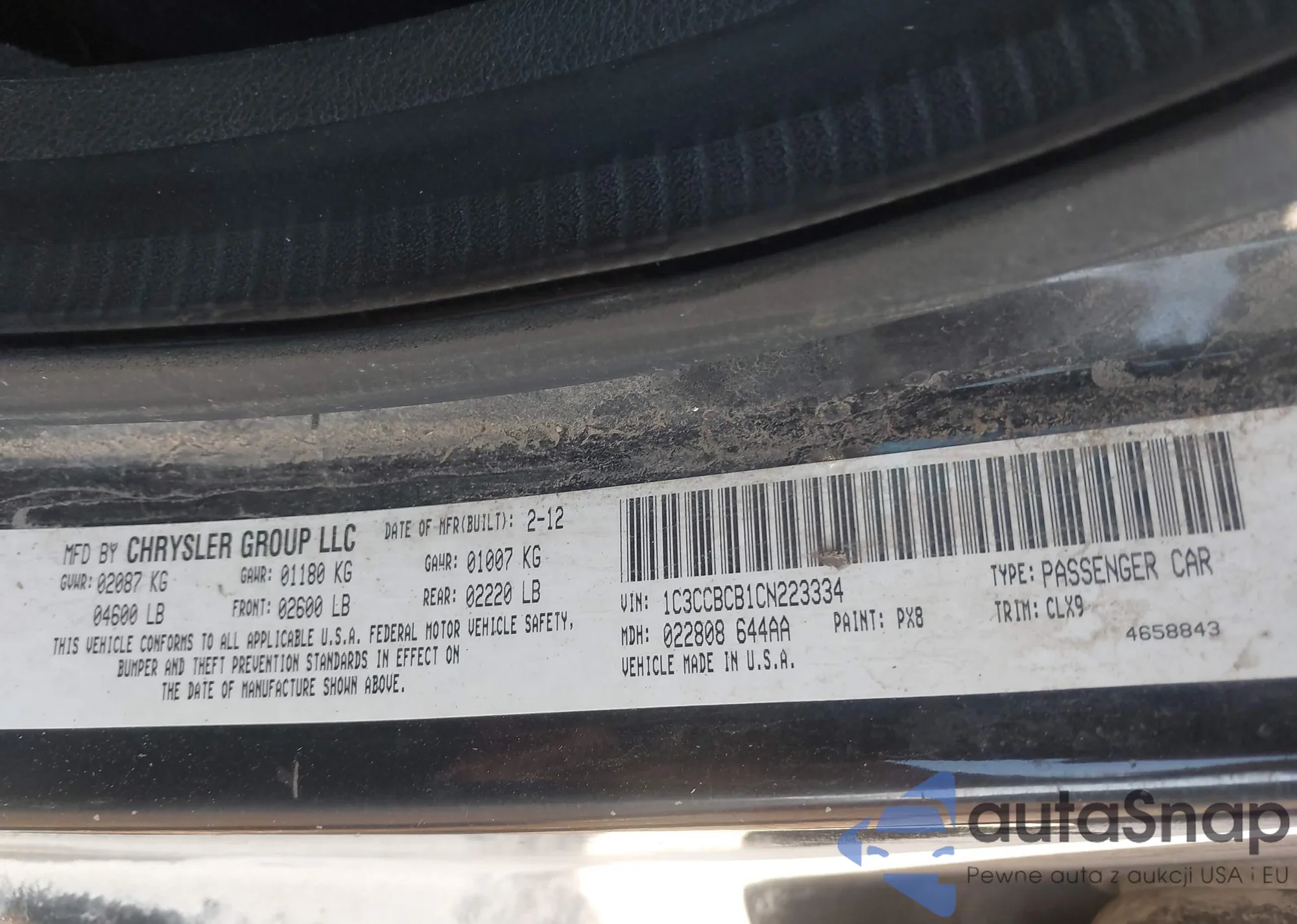 LOT: 42925737 VIN: 1C3CCBCB1CN223334