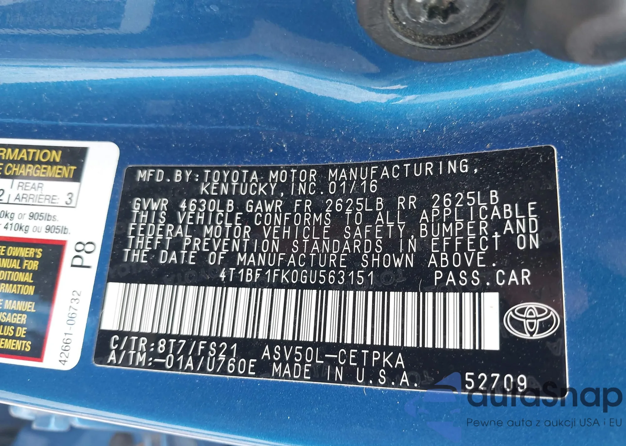 • VIN 4T1BF1FK0GU563151