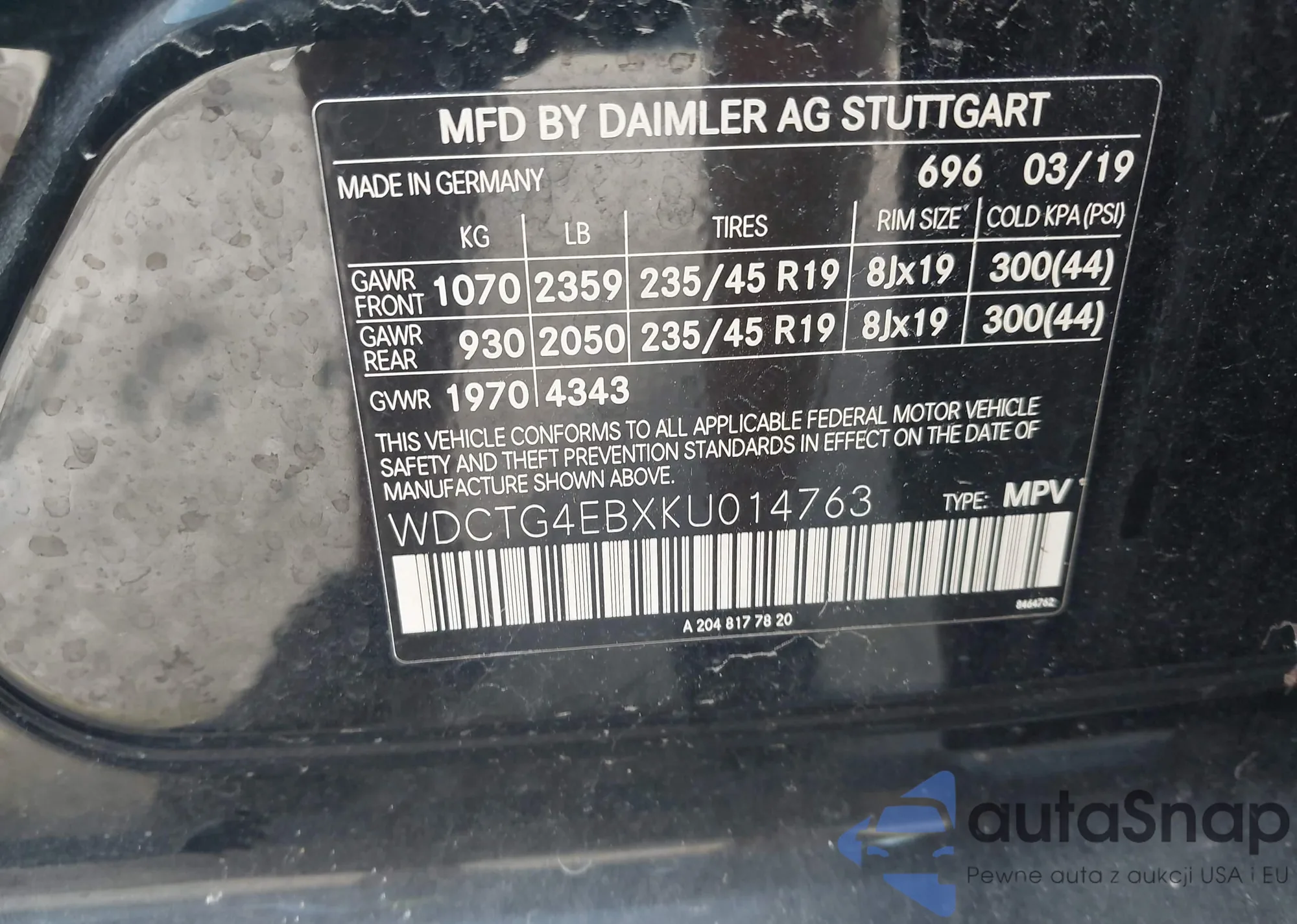 • VIN WDCTG4EBXKU014763