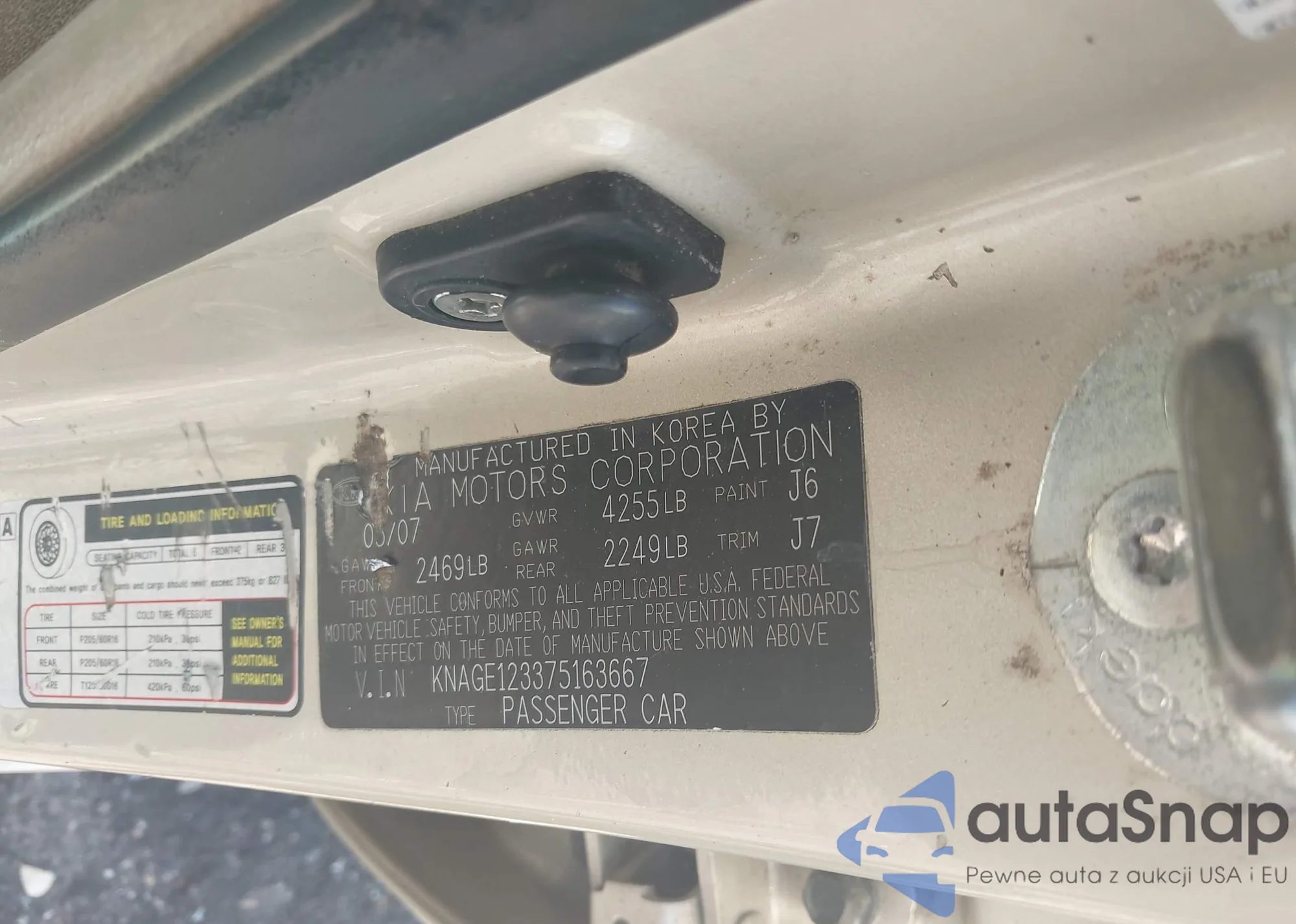 LOT: 42798949 VIN: KNAGE123375163667