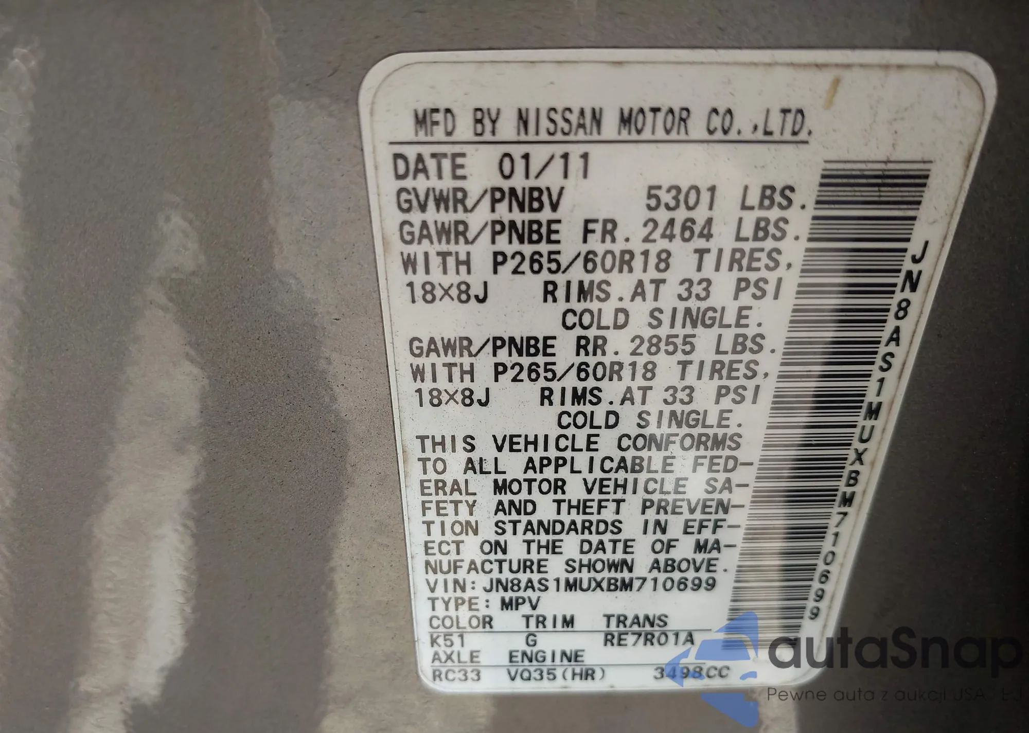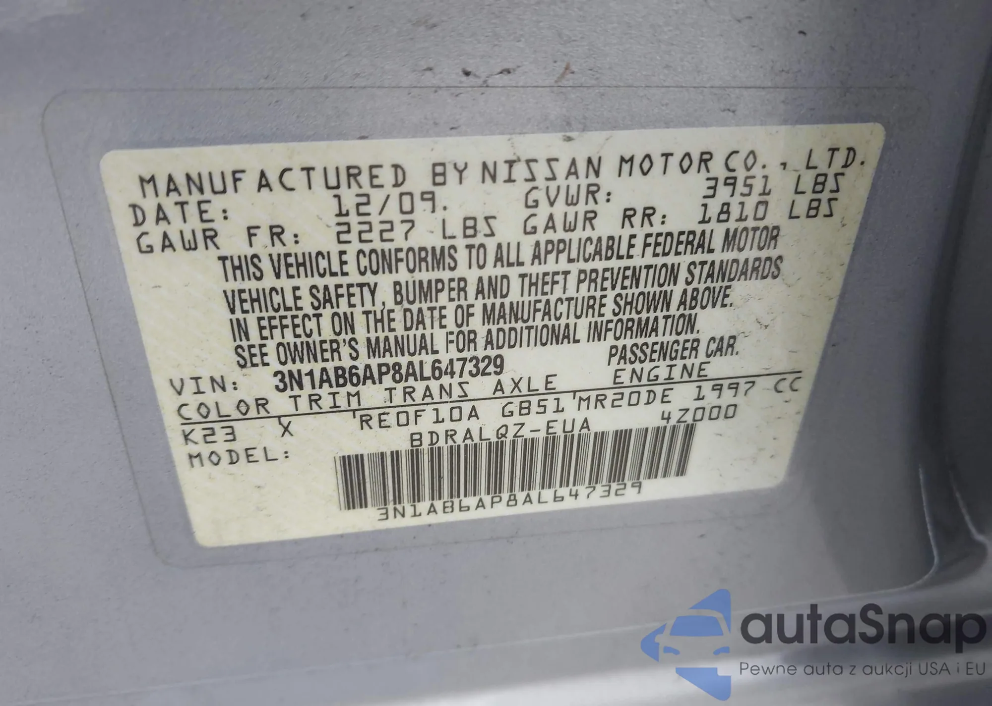 LOT: 42968913 VIN: 3N1AB6AP8AL647329