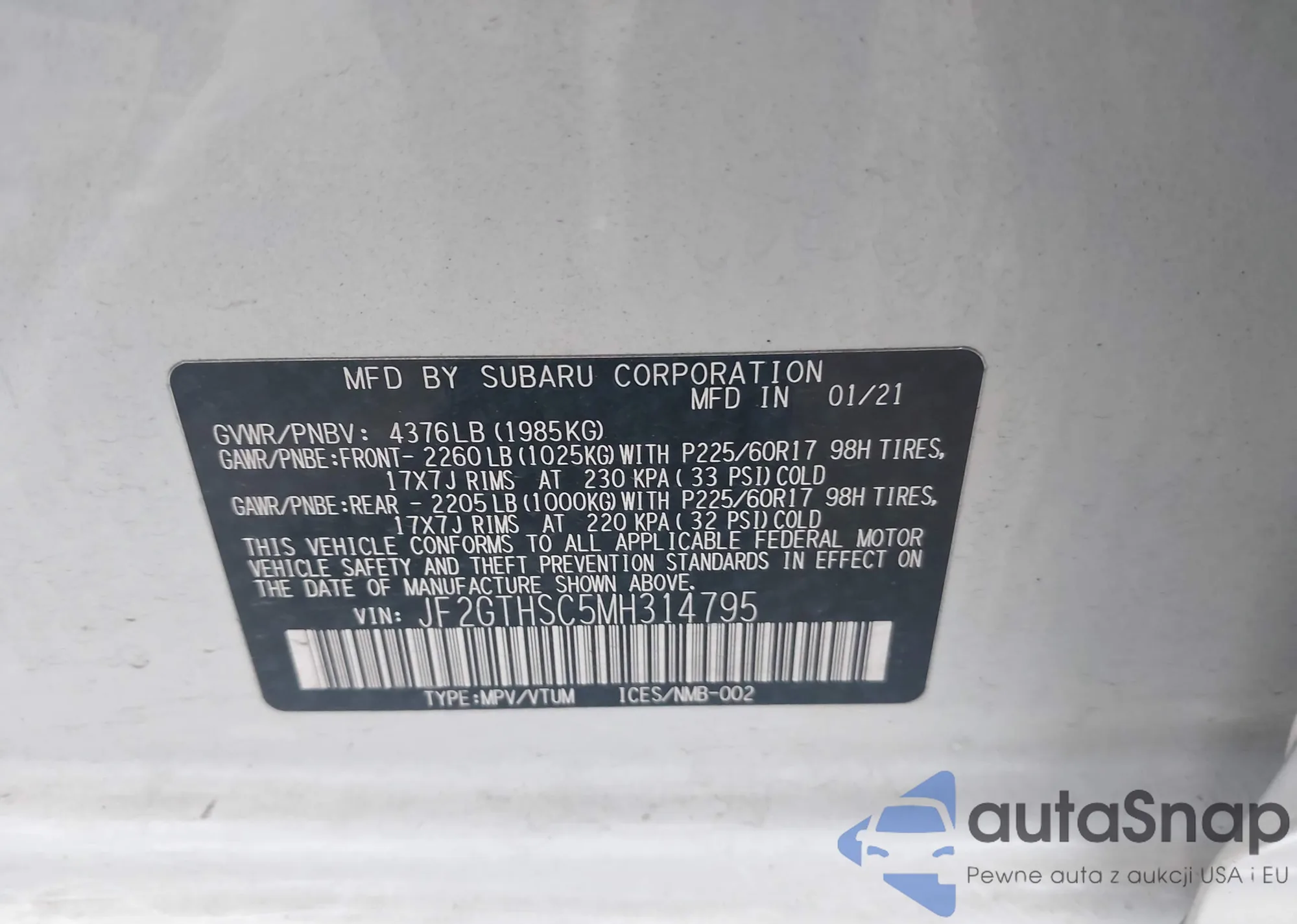 LOT: 43136061 VIN: JF1SG69625H745572