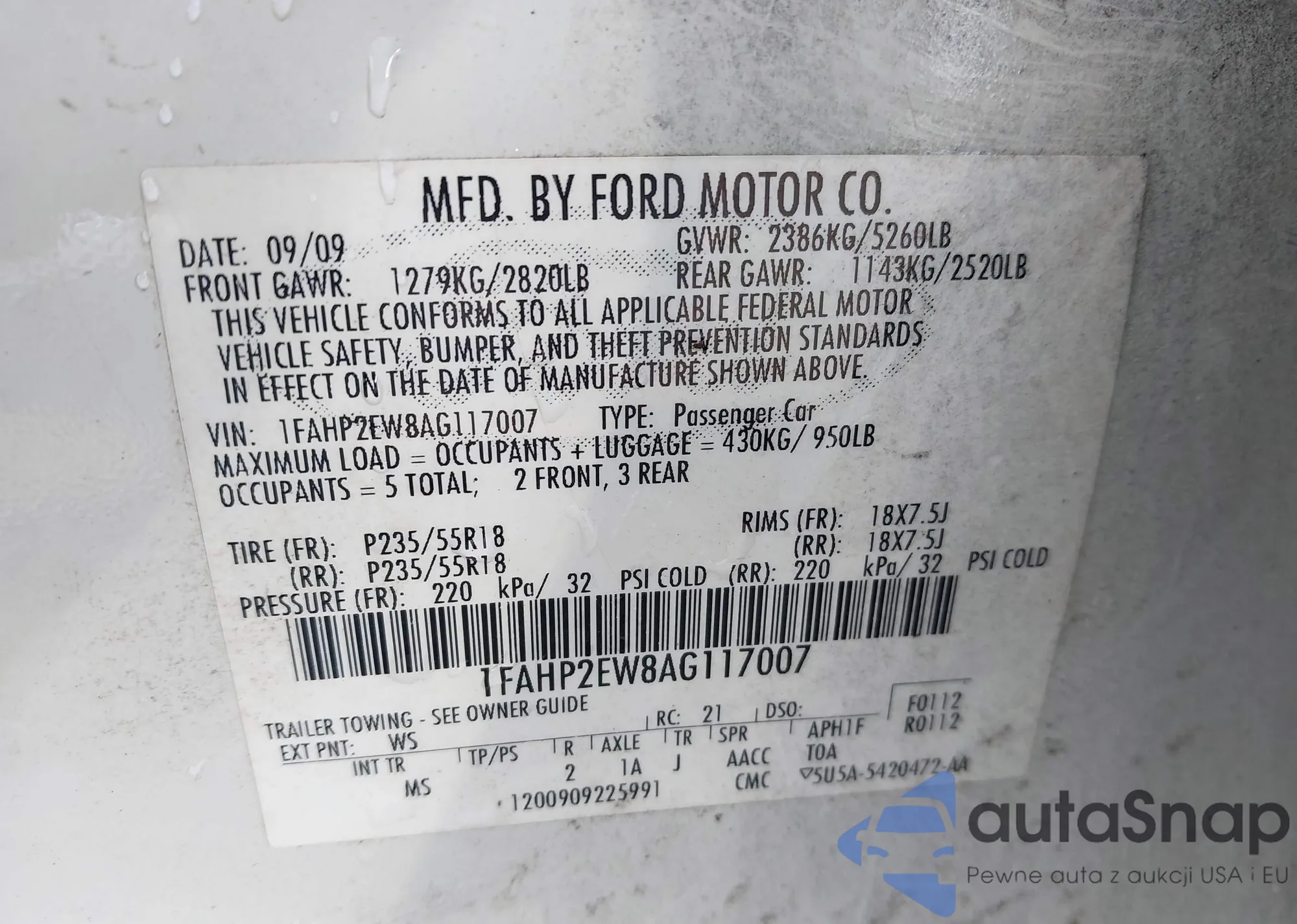 • VIN 1FAHP2EW8AG117007