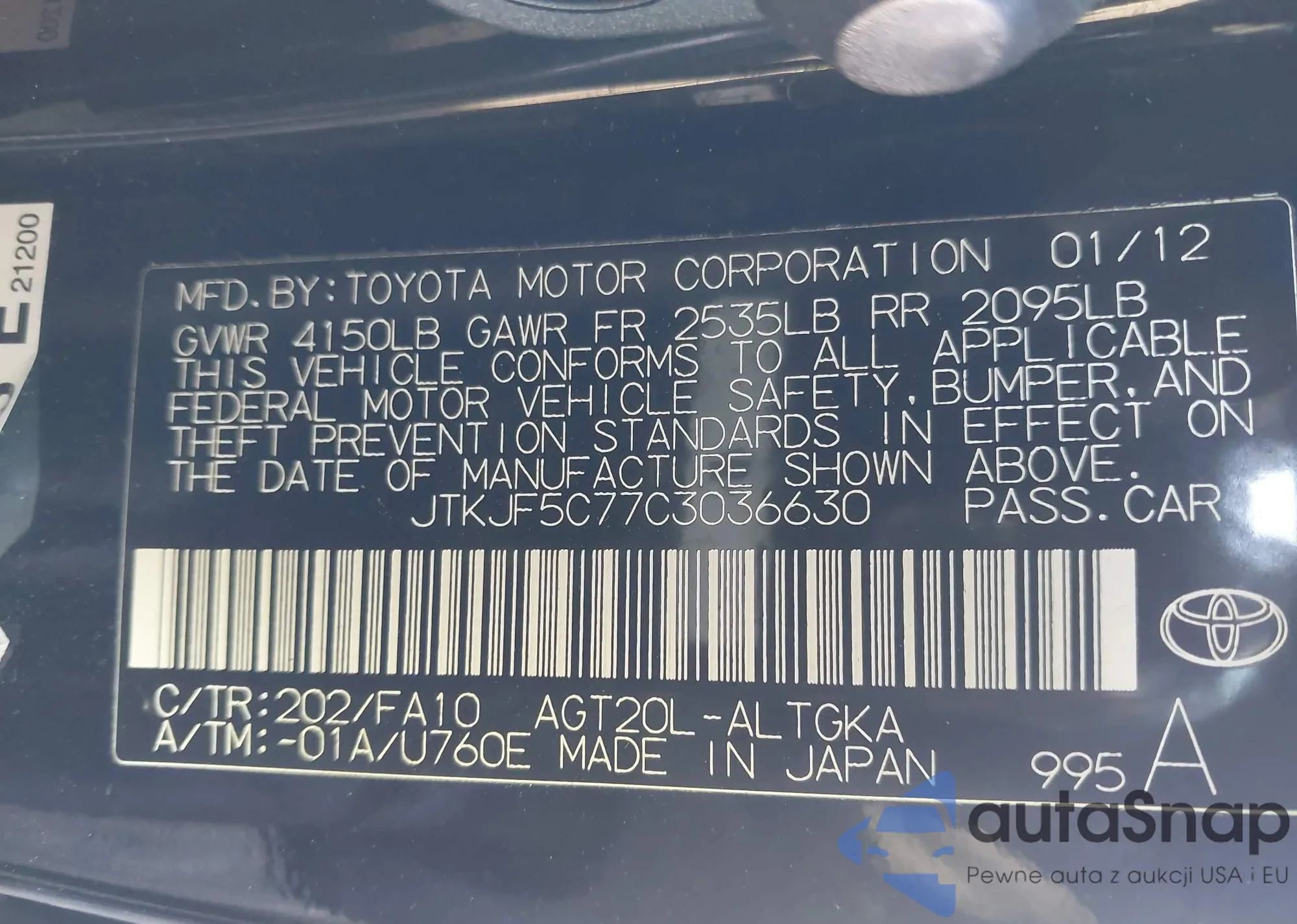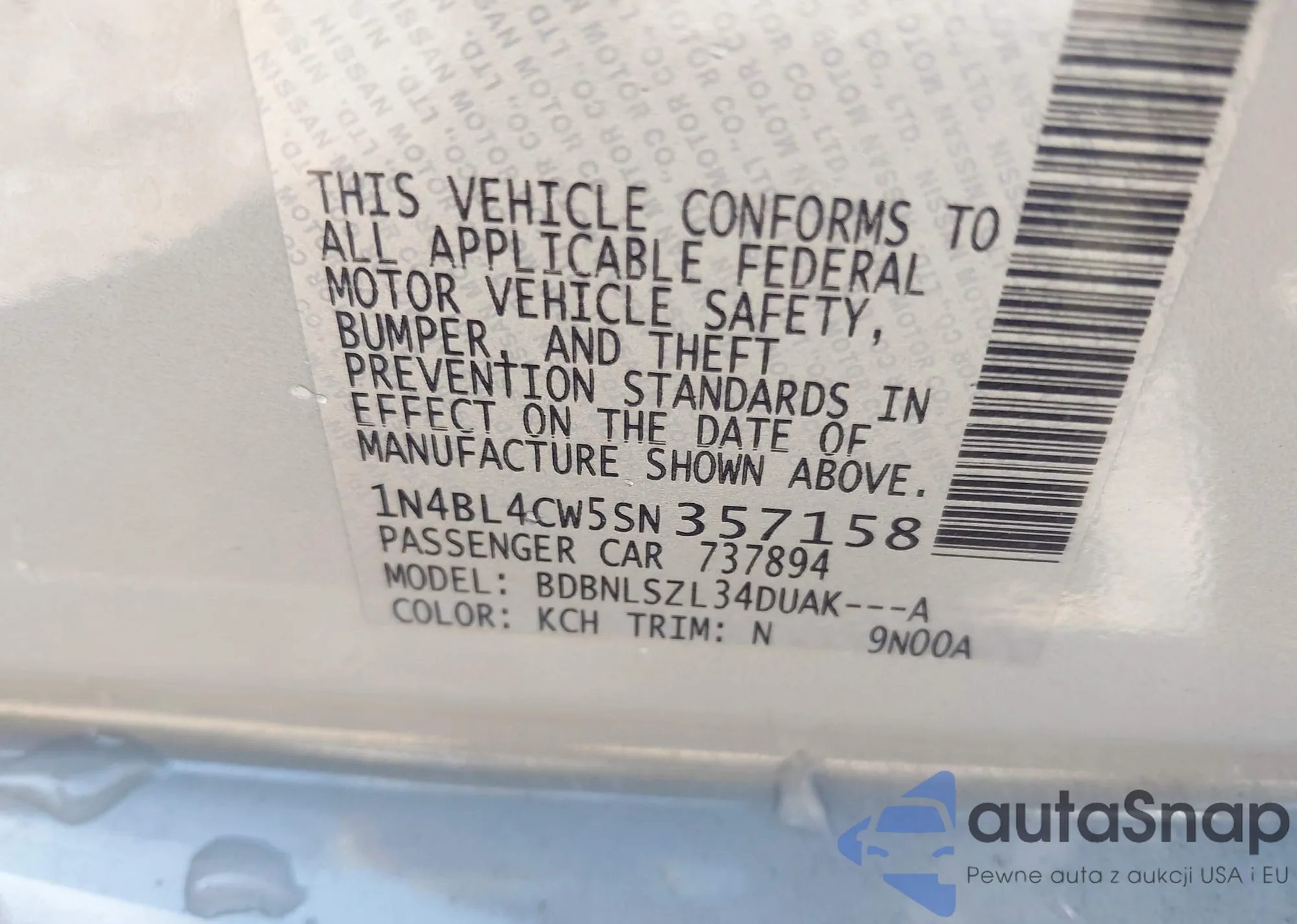 • VIN 1N4BL4CW5SN357158