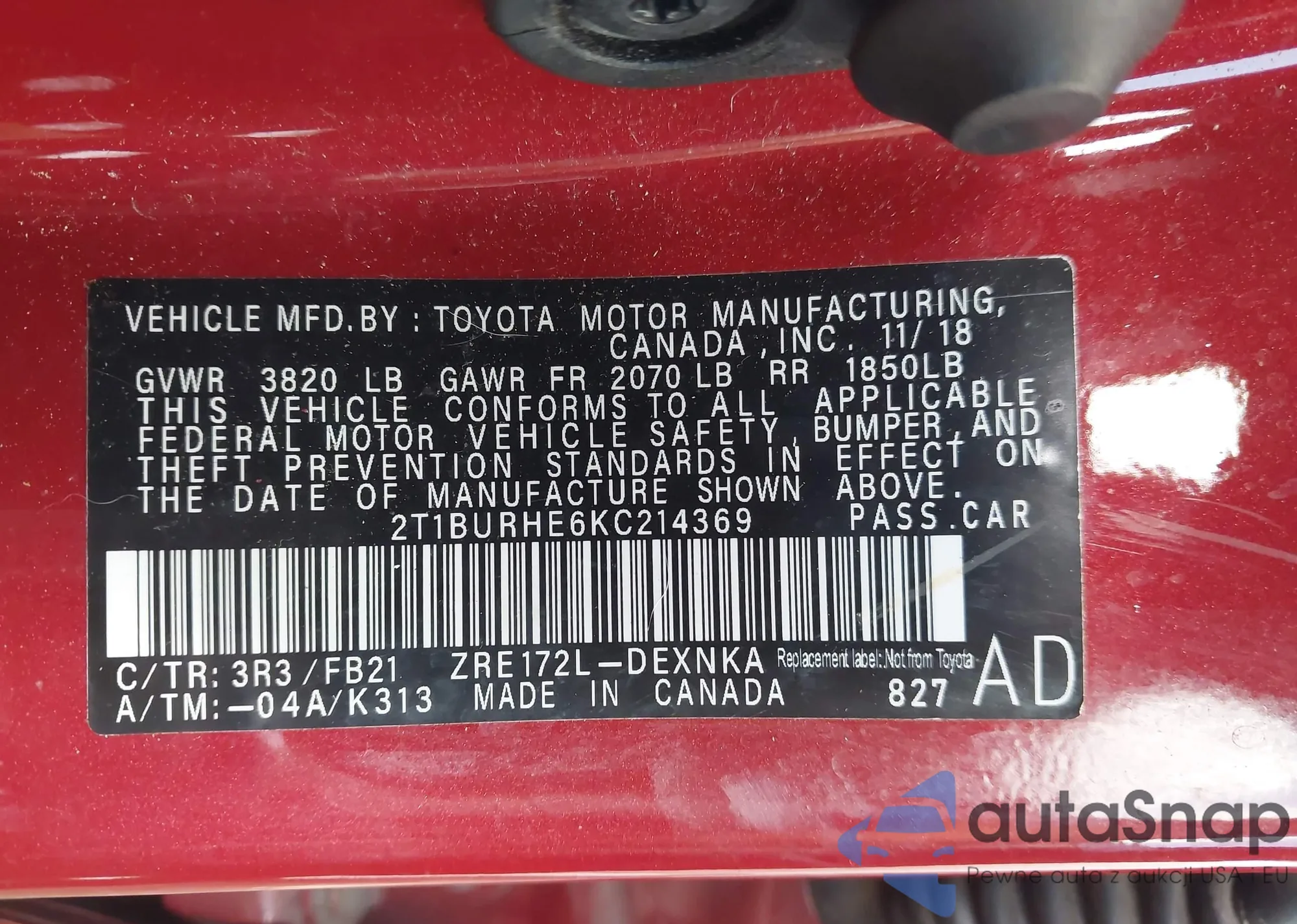 • VIN 2T1BURHE6KC214369