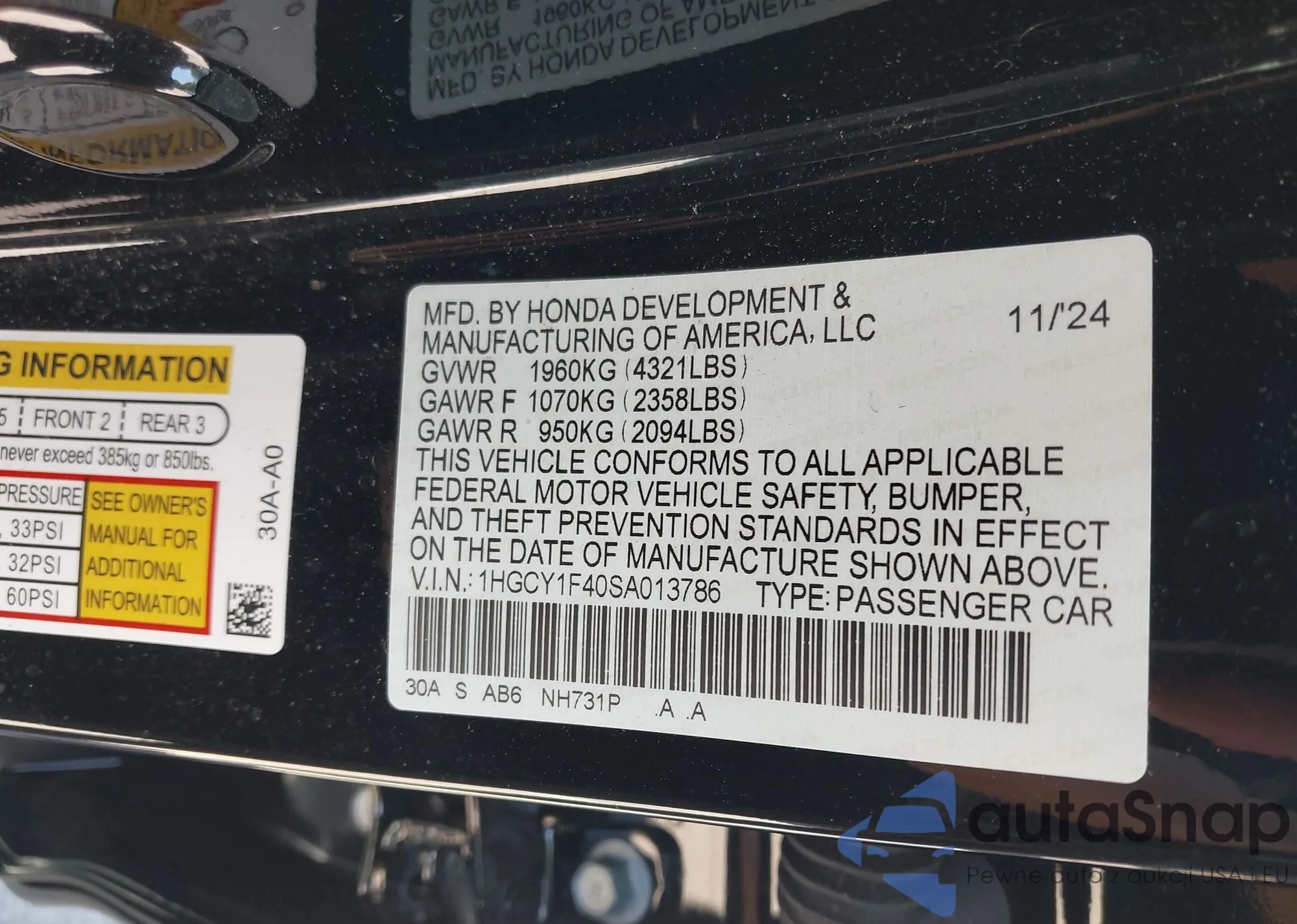 • VIN 1HGCY1F40SA013786