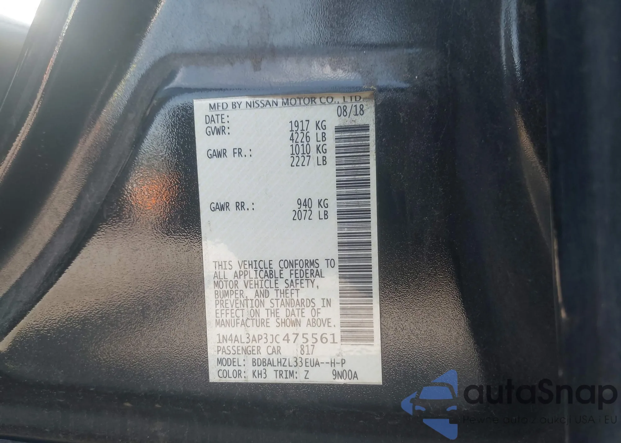 LOT: 43172000 VIN: 1N4BL4CW5SN357158