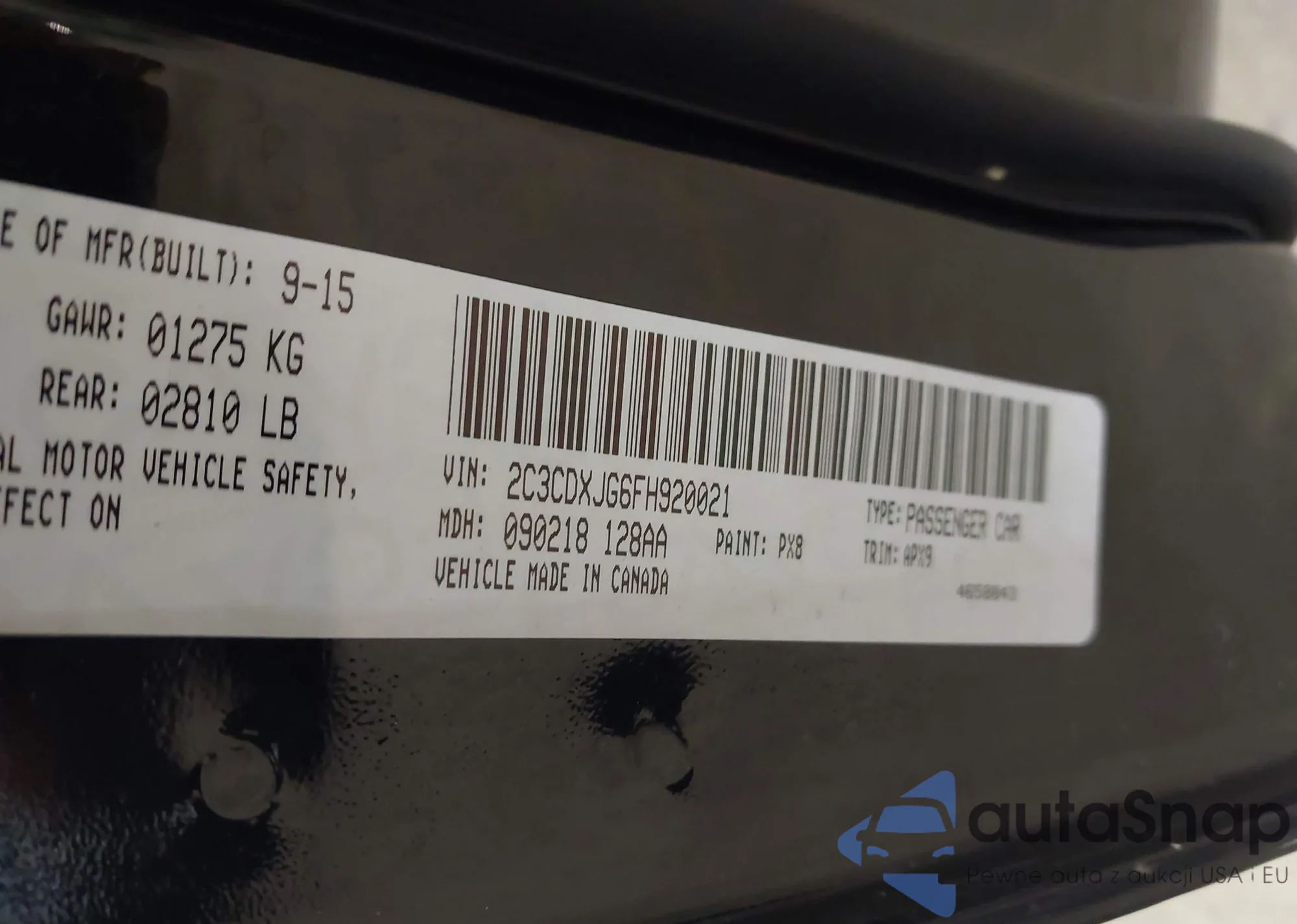 • VIN 2C3CDXJG6FH920021