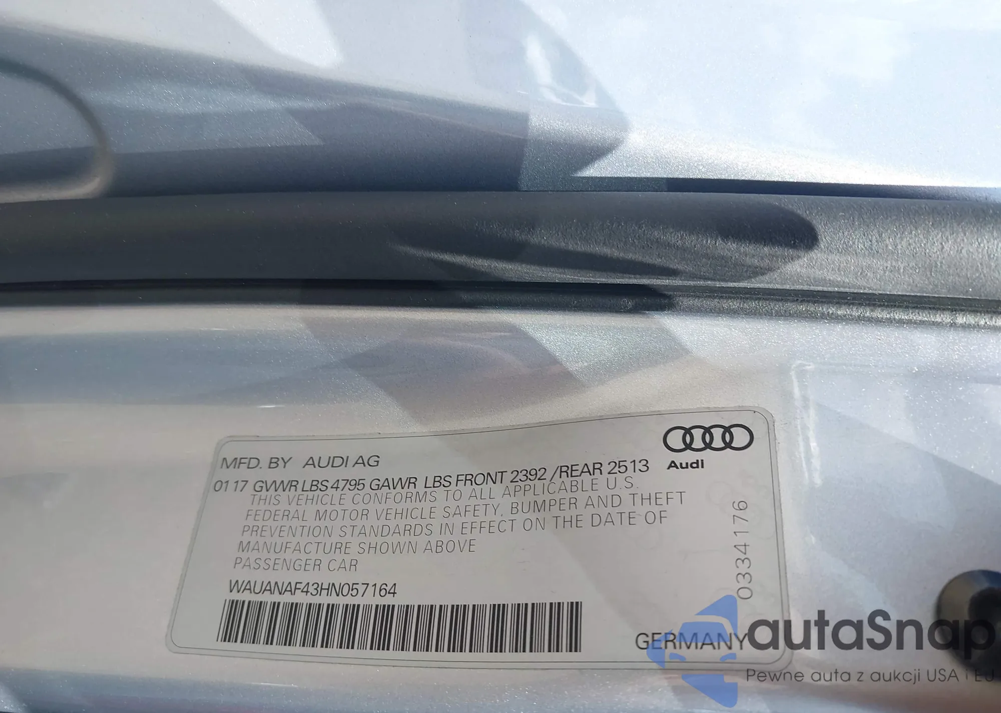 LOT: 43116495 VIN: WAUANAF43HN057164
