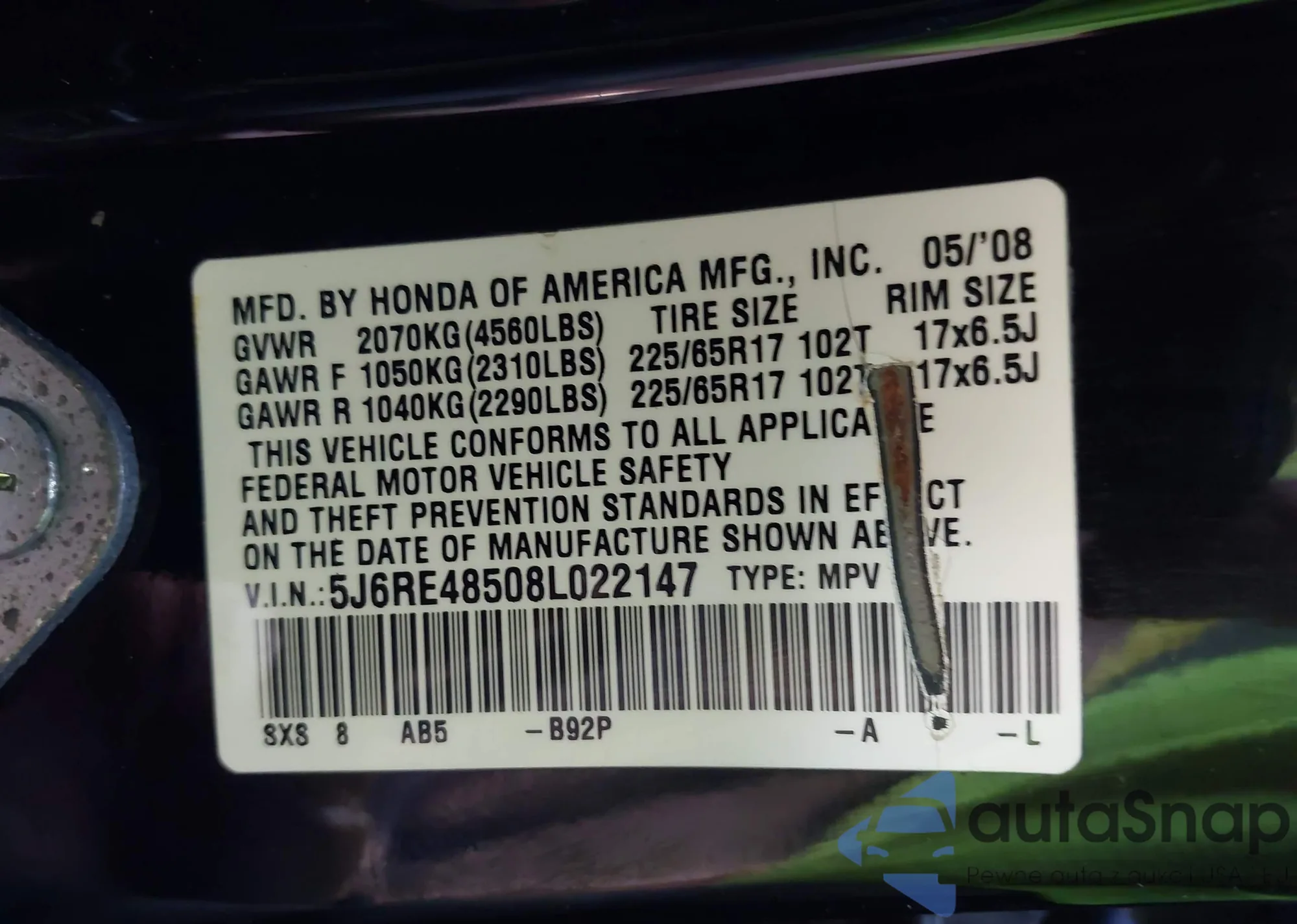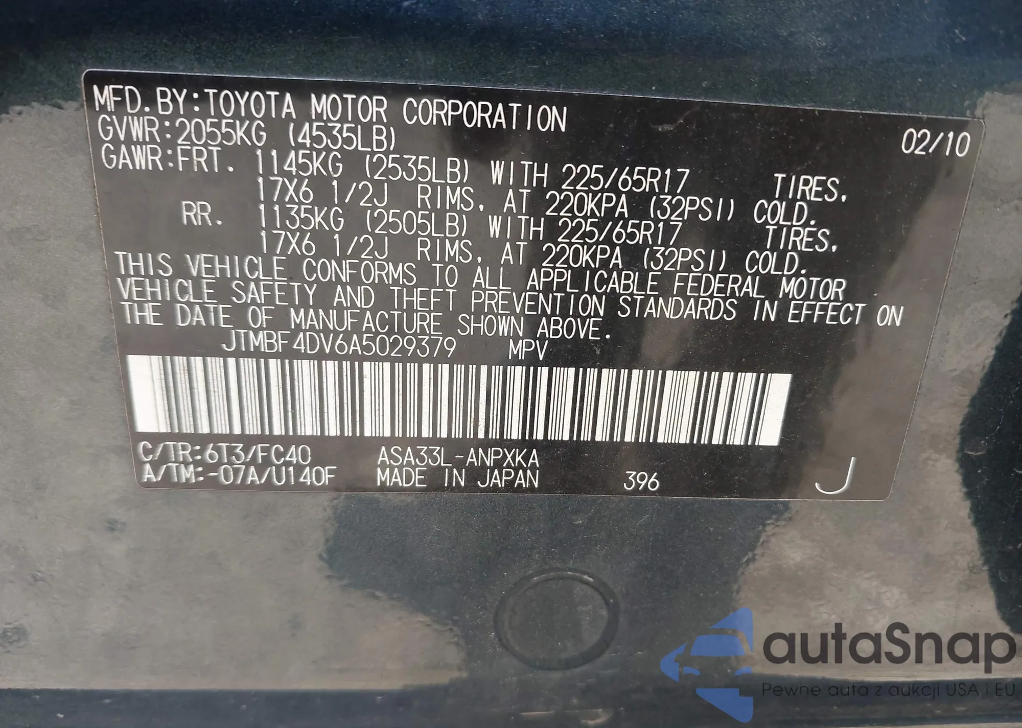 • VIN JTMBF4DV6A5029379