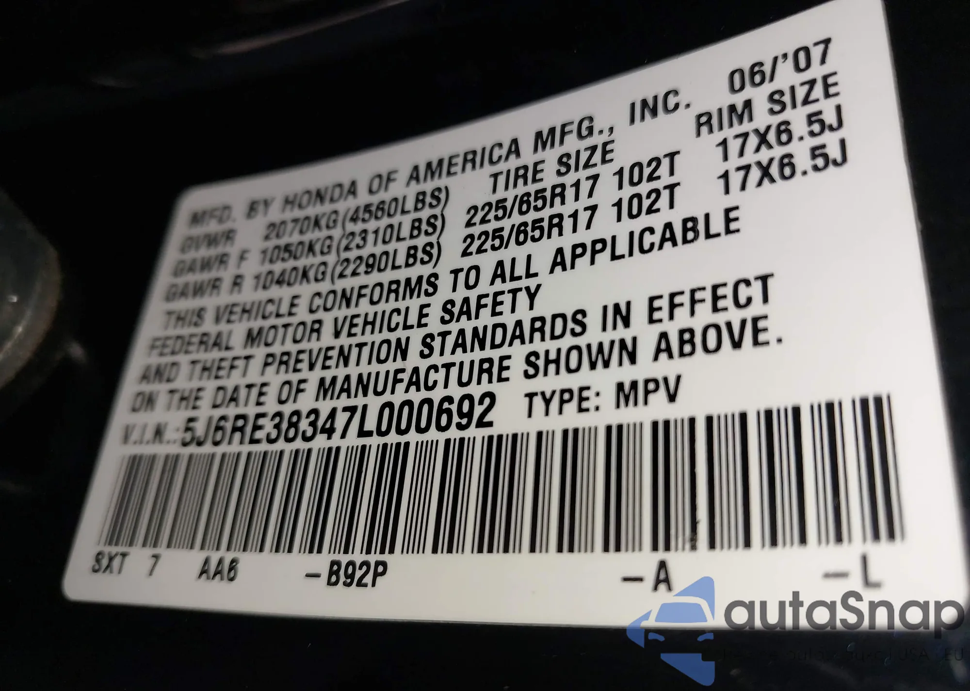 • VIN 1HGCR2F19HA251024