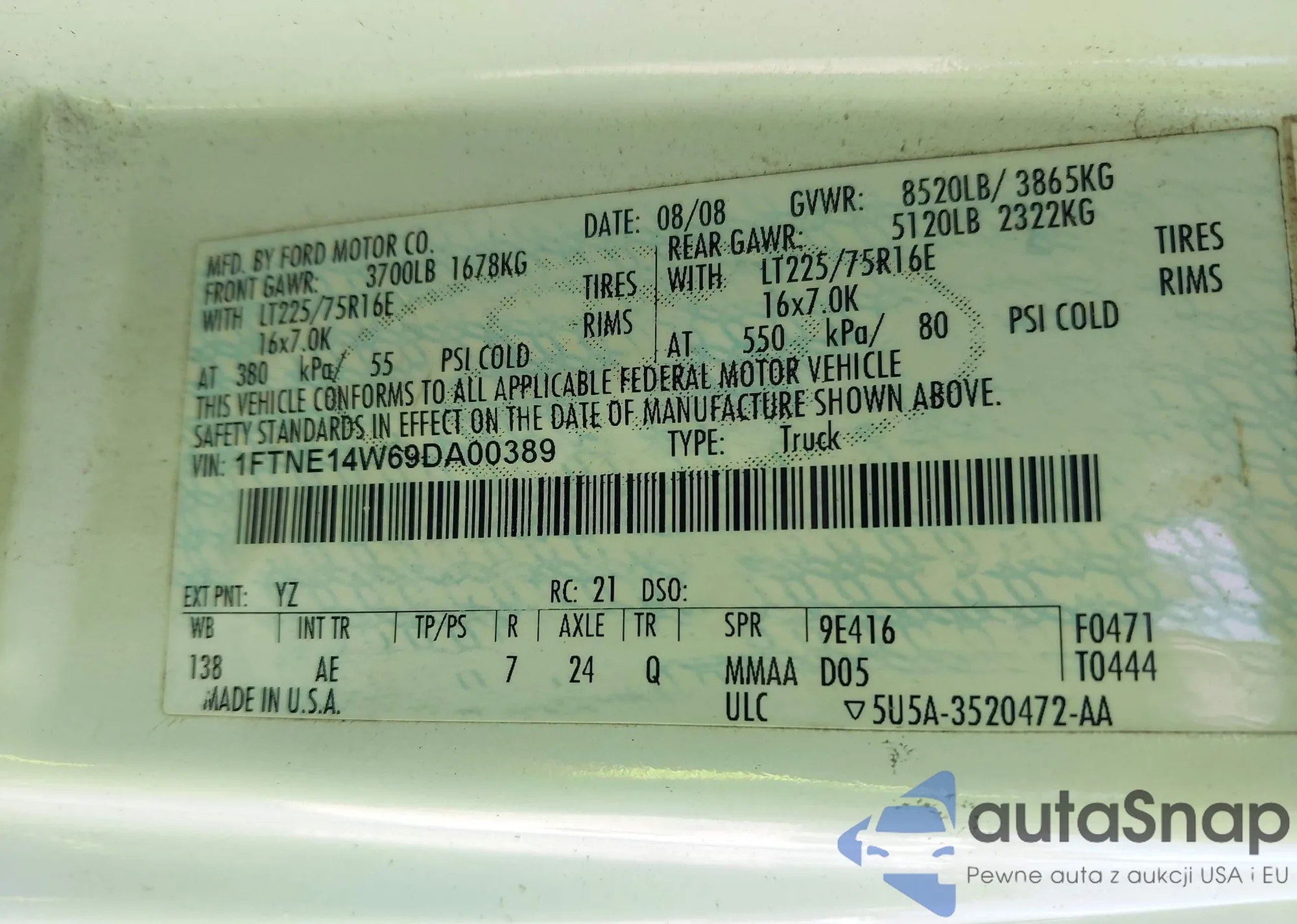 LOT: 43205992 VIN: 1FTNE14W69DA00389