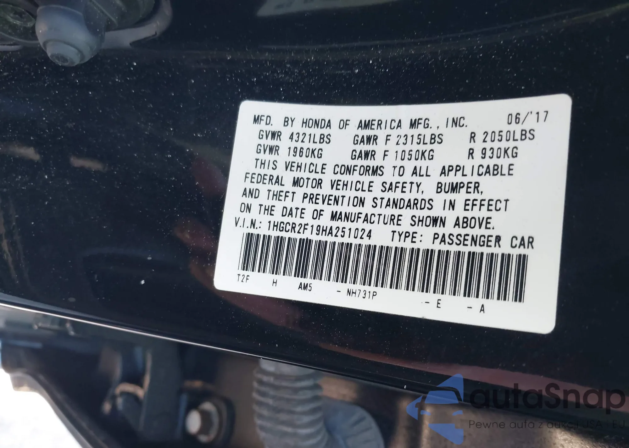 LOT: 43205630 VIN: 1HGCR2F19HA251024