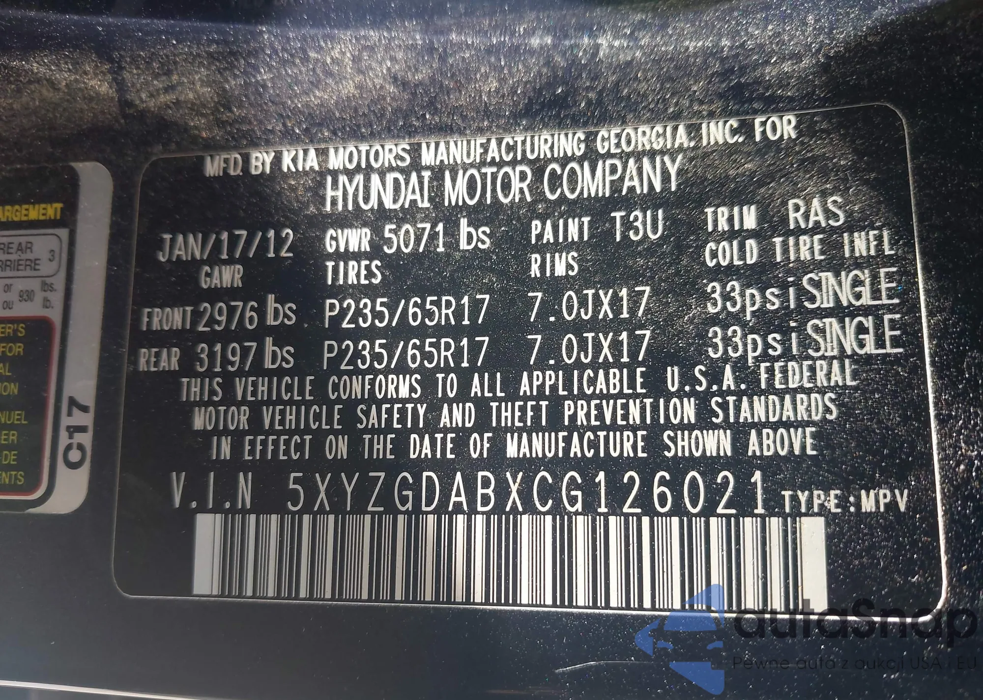 LOT: 43208829 VIN: 5XYZGDABXCG126021