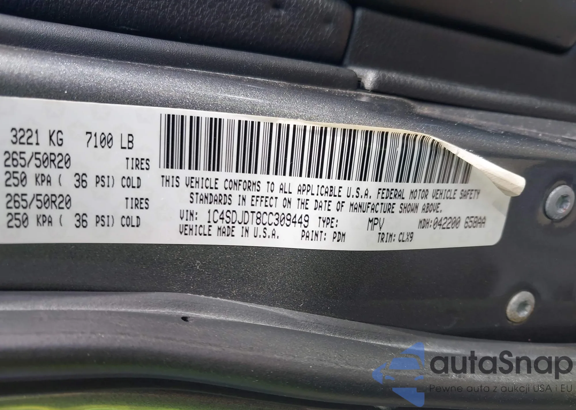 • VIN 1C4SDJDT8CC309449