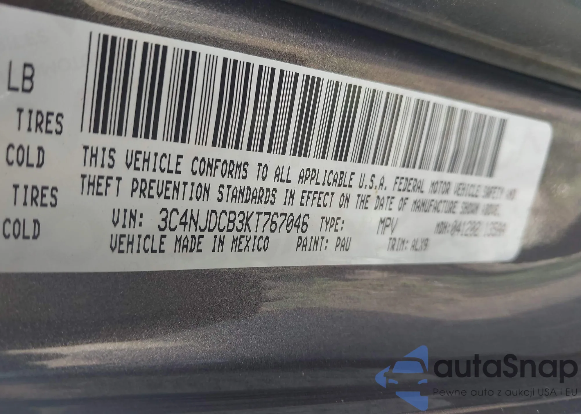 • VIN 3C4NJDCB3KT767046