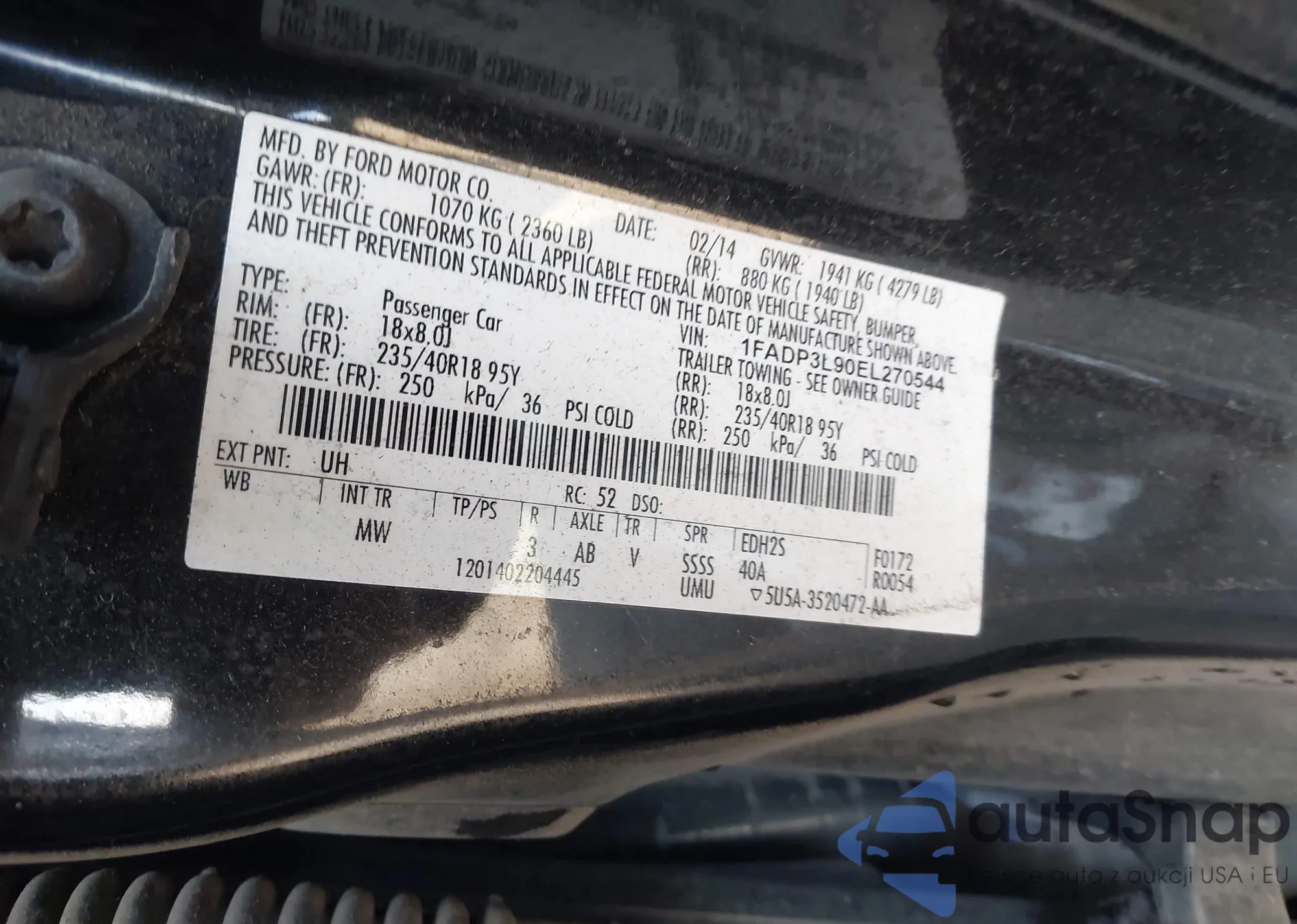 • VIN 1FADP3L90EL270544