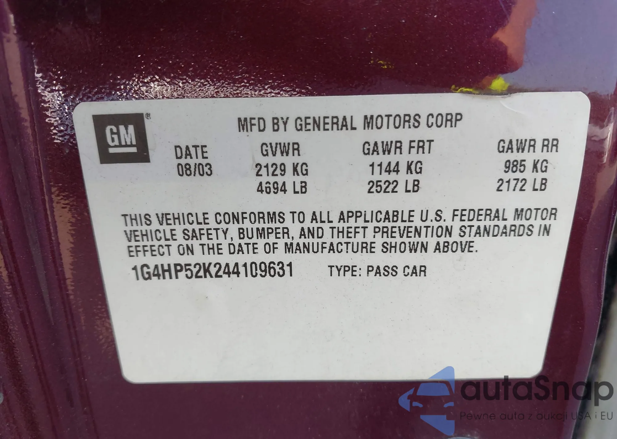 • VIN 1G4HP52K244109631