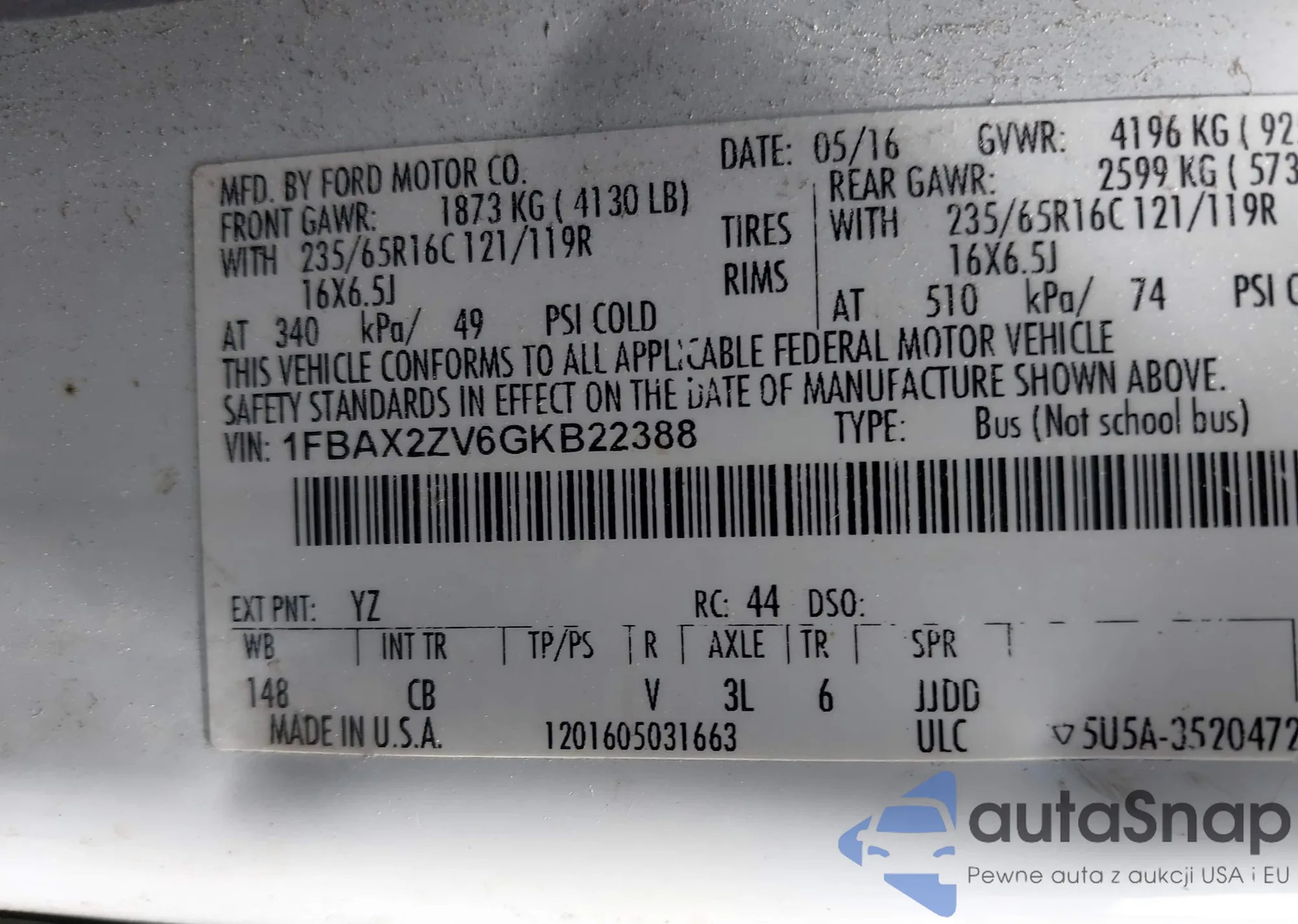 LOT: 42580826 VIN: 2FMPK4J93NBA78531