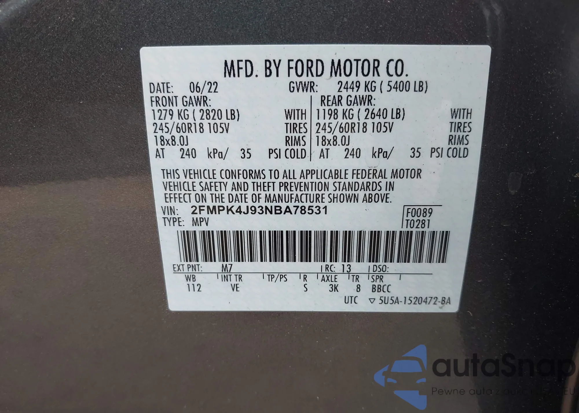 • VIN 2FMPK4J93NBA78531