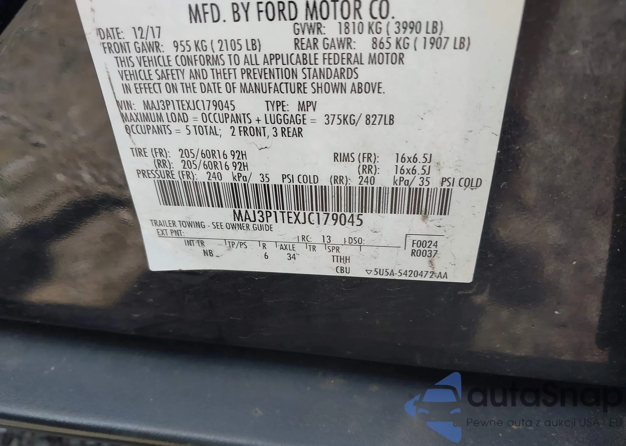 LOT: 42800146 VIN: MAJ3P1TEXJC179045