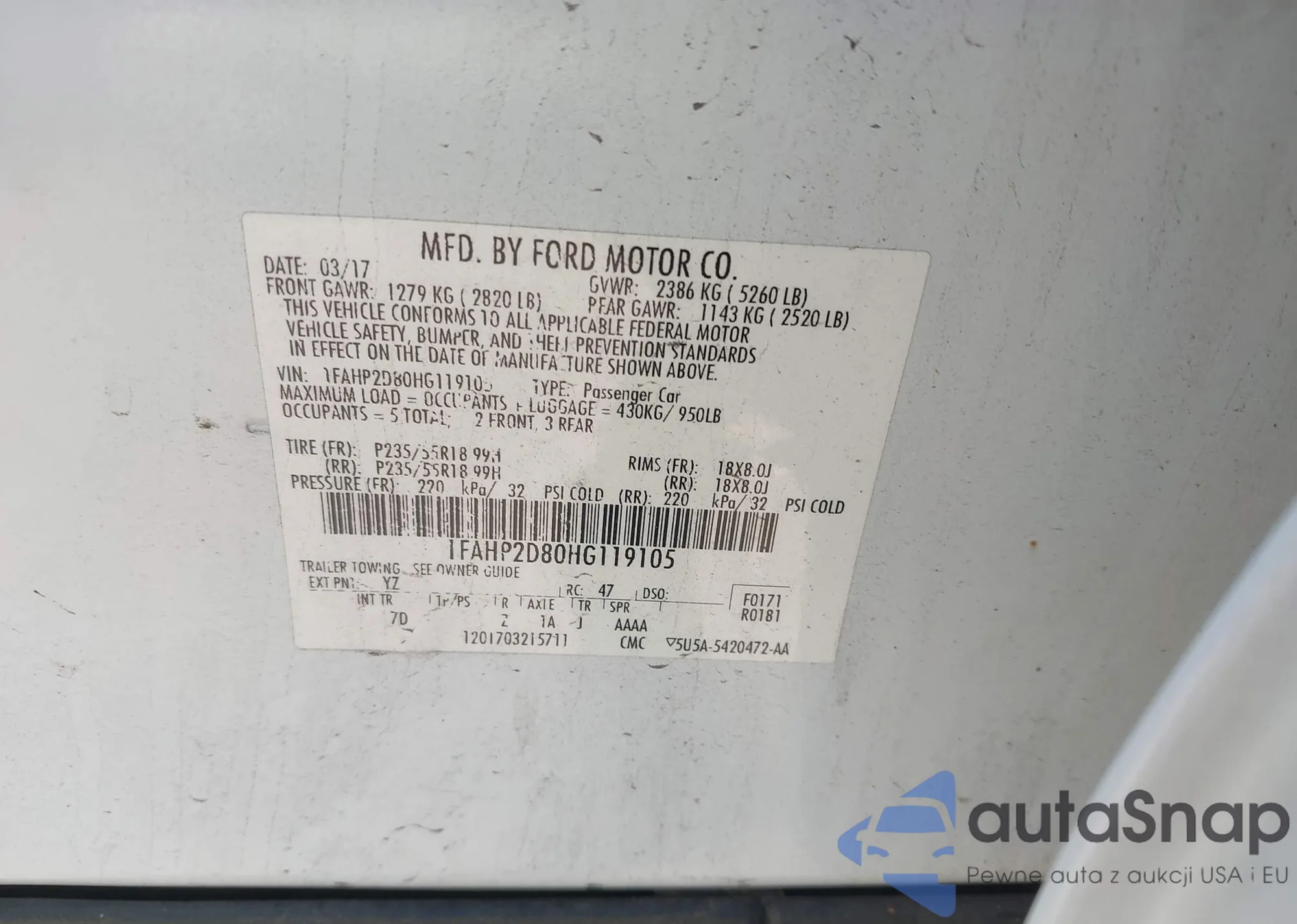• VIN 3FA6P0LU8DR178125