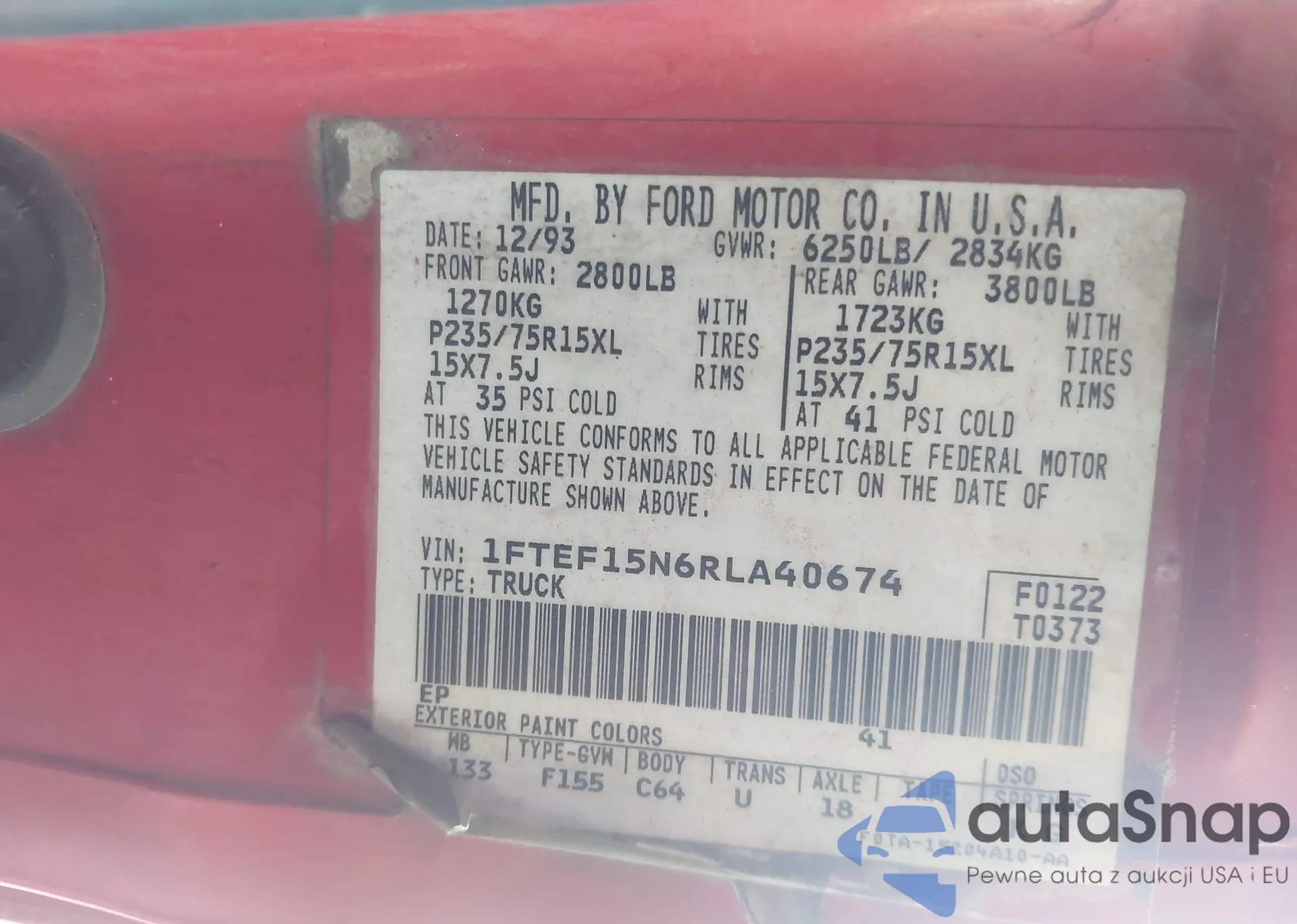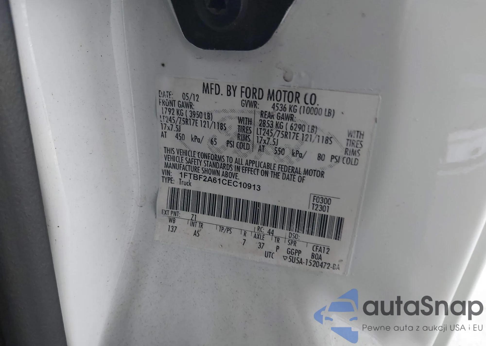 • VIN 1FTBF2A61CEC10913