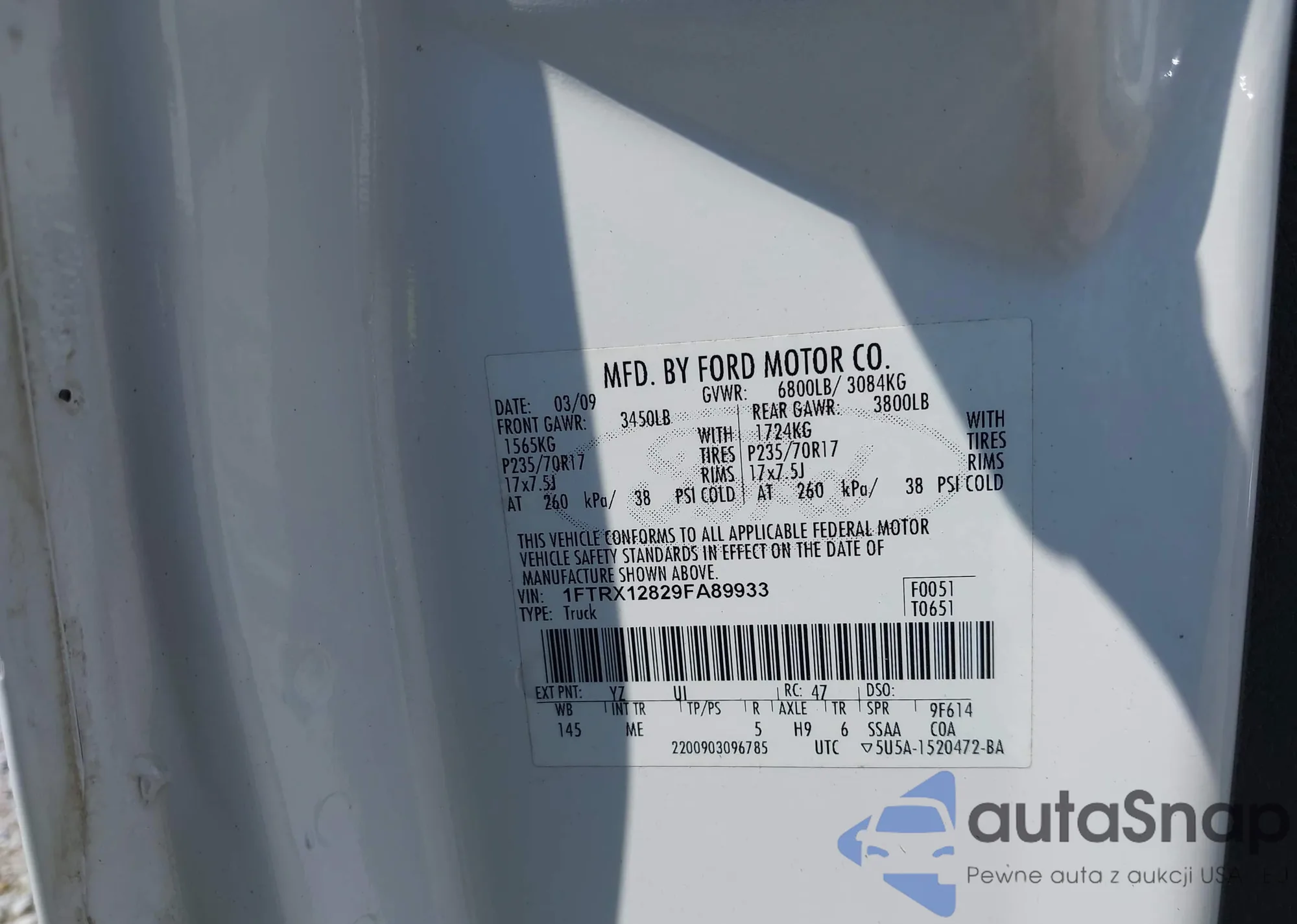 LOT: 42611593 VIN: 1FTRX12829FA89933