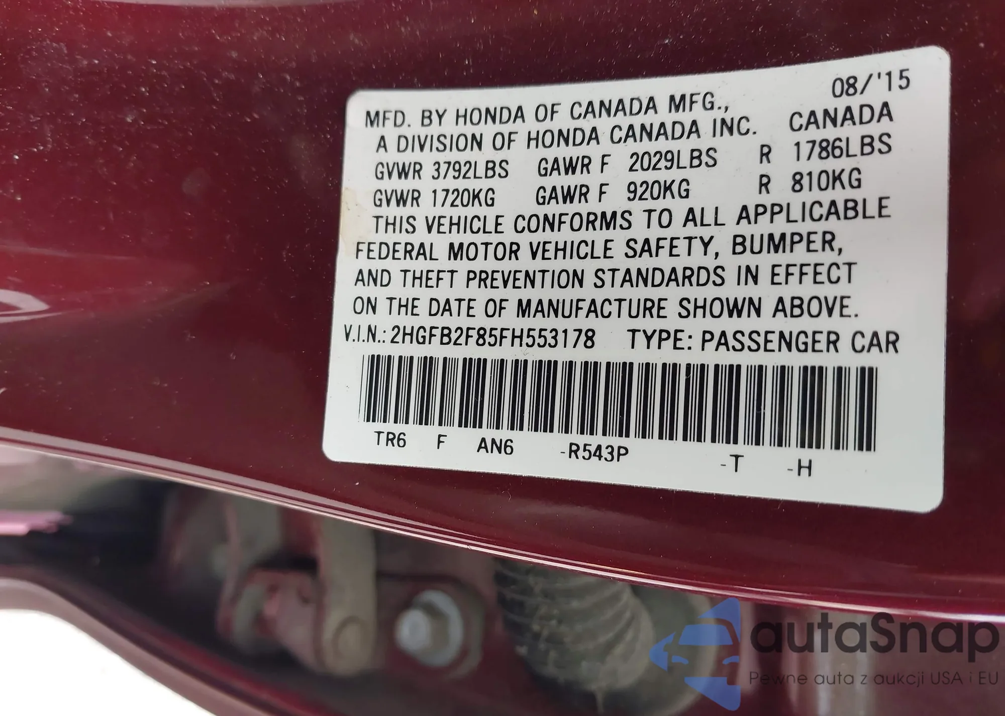 LOT: 42628353 VIN: 1HGFA165X6L021902