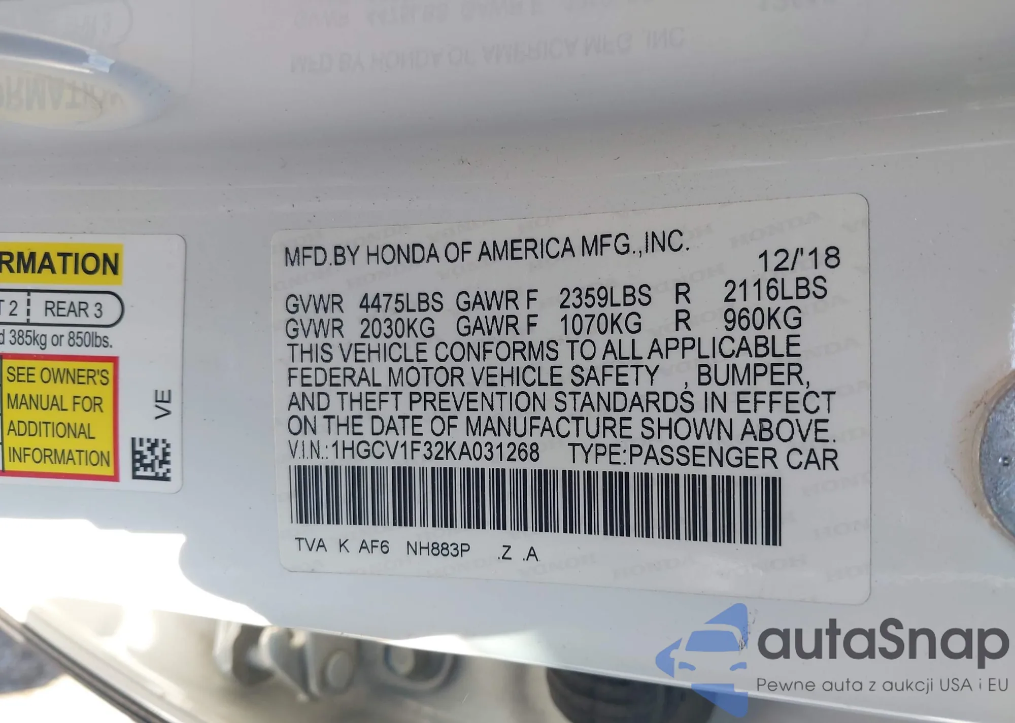 LOT: 43081400 VIN: 1HGCR2F71EA029237