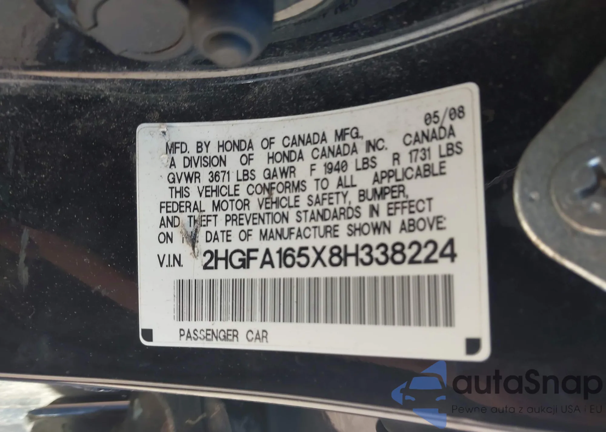 • VIN 2HGFA165X8H338224