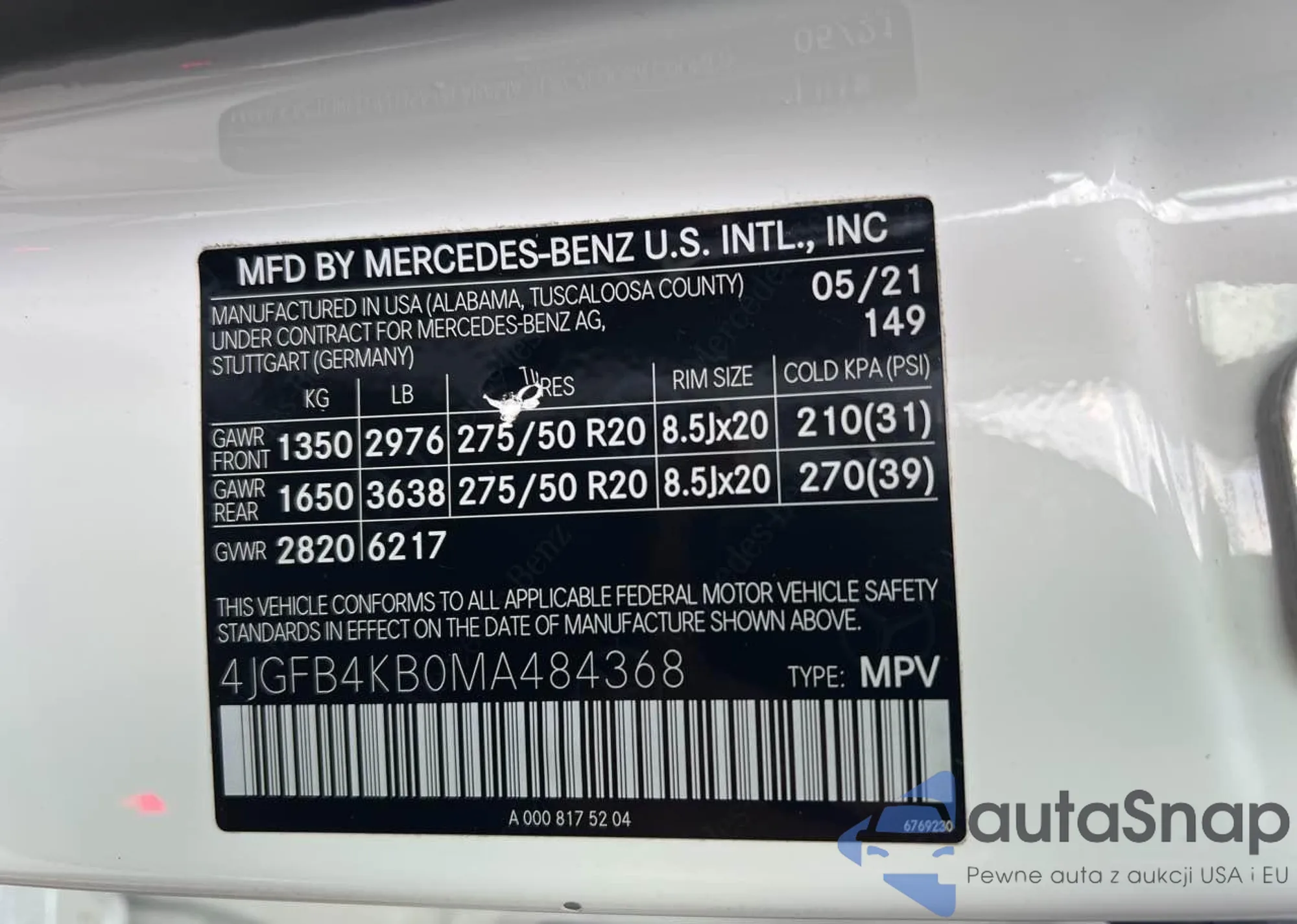 • VIN 4JGFB4KB0MA484368