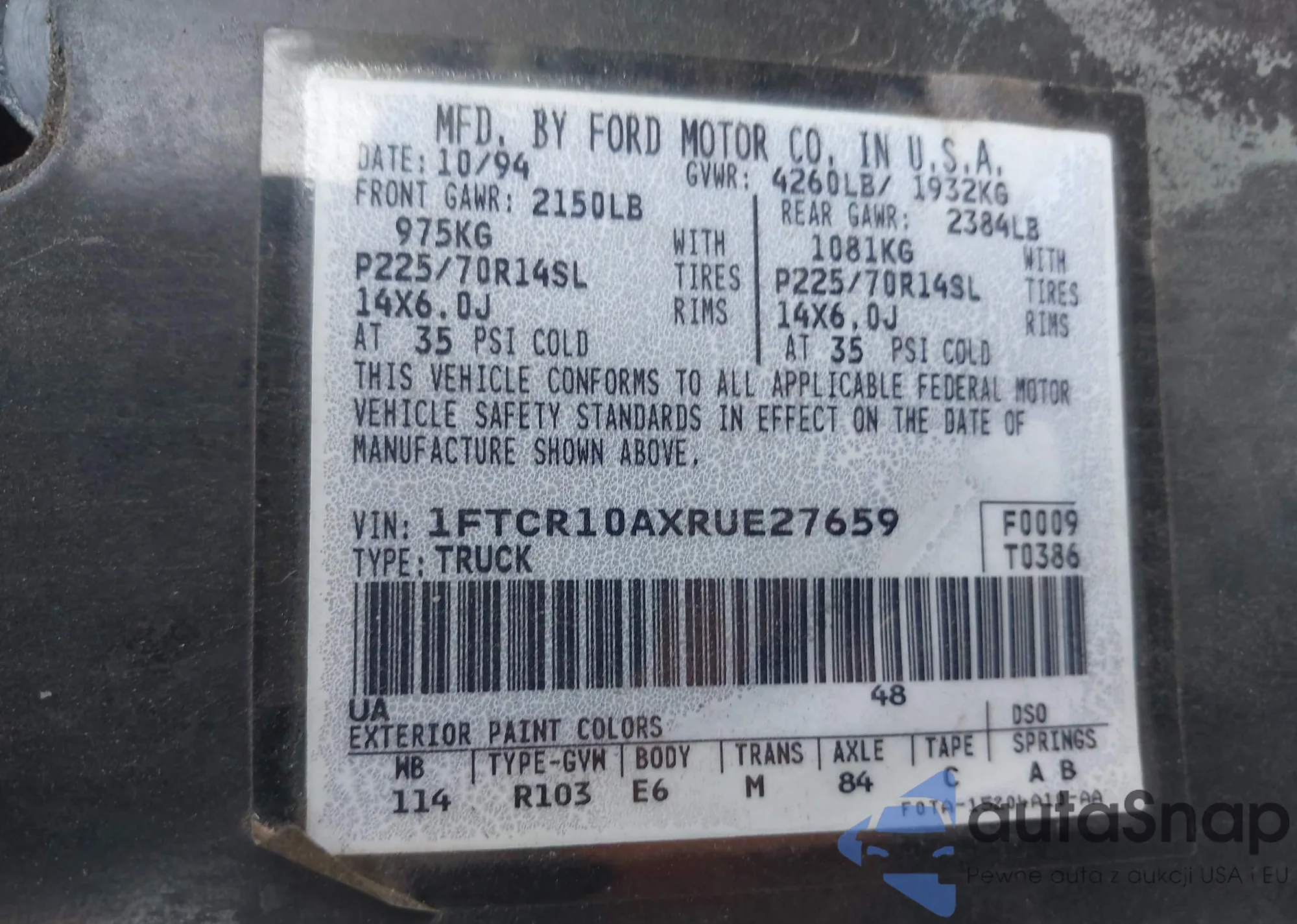 • VIN 1FTCR10AXRUE27659