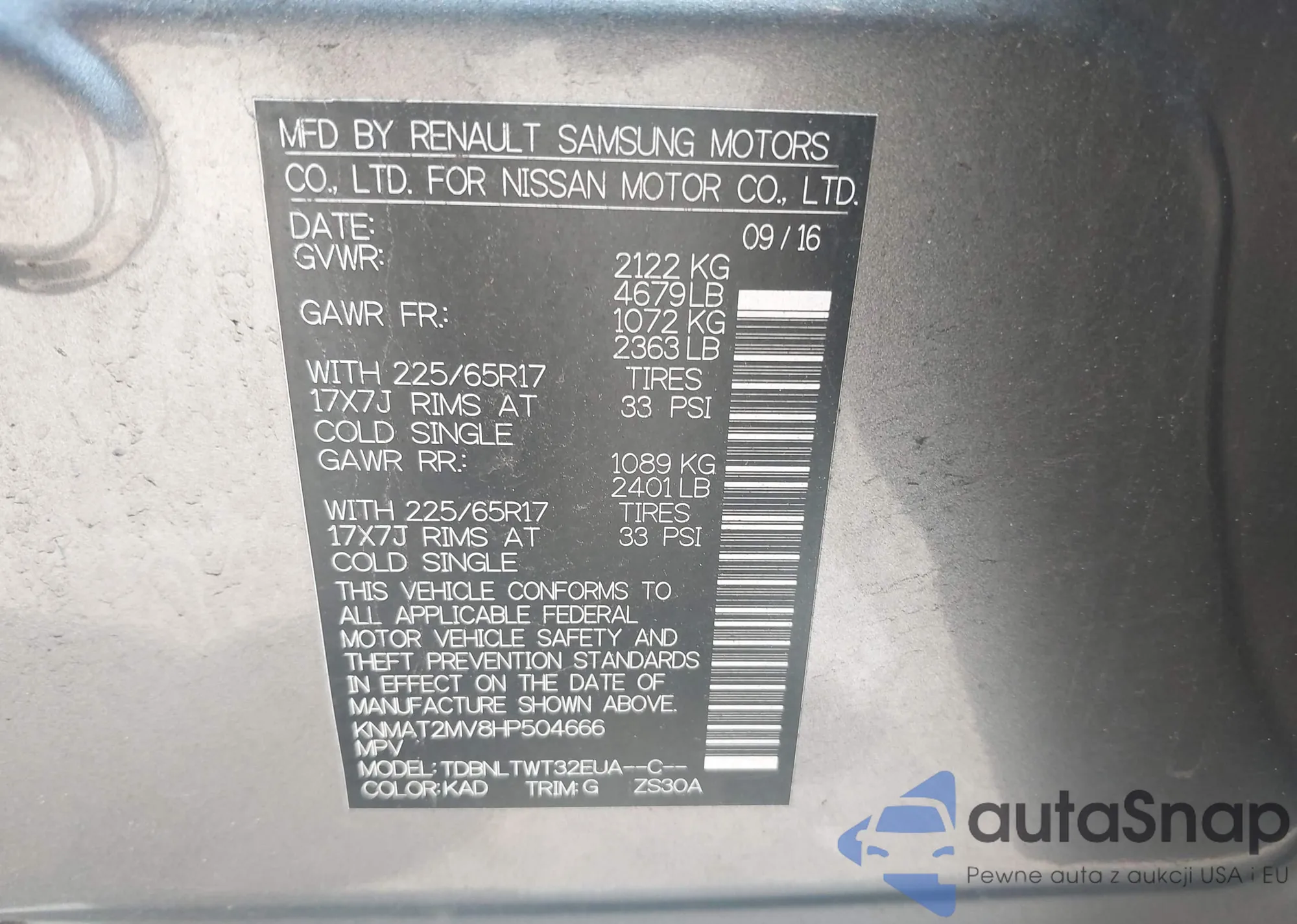 • VIN KNMAT2MV8HP504666