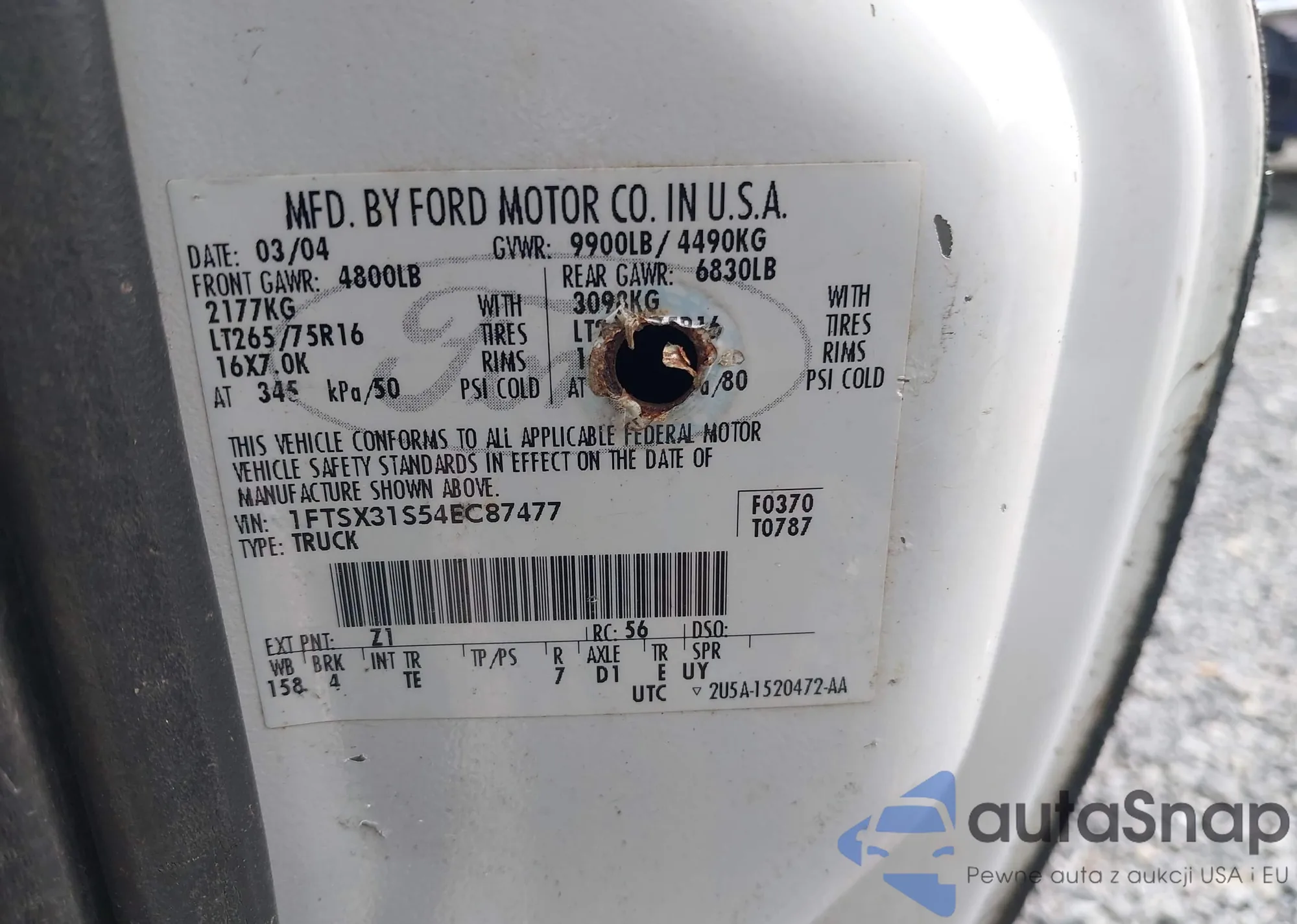 LOT: 42860245 VIN: 1FTPF12V97KC40268