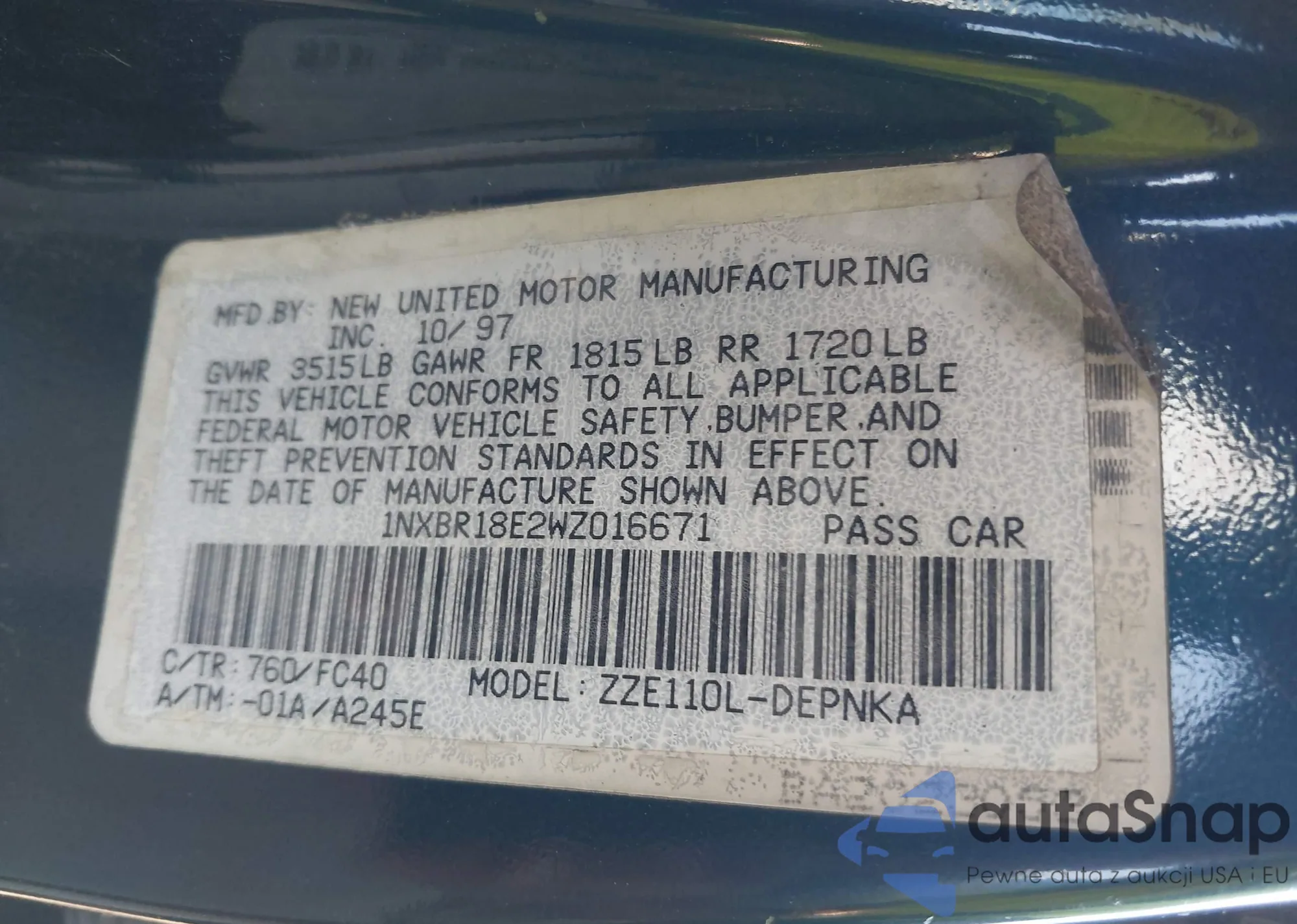 • VIN 1NXBR18E2WZ016671