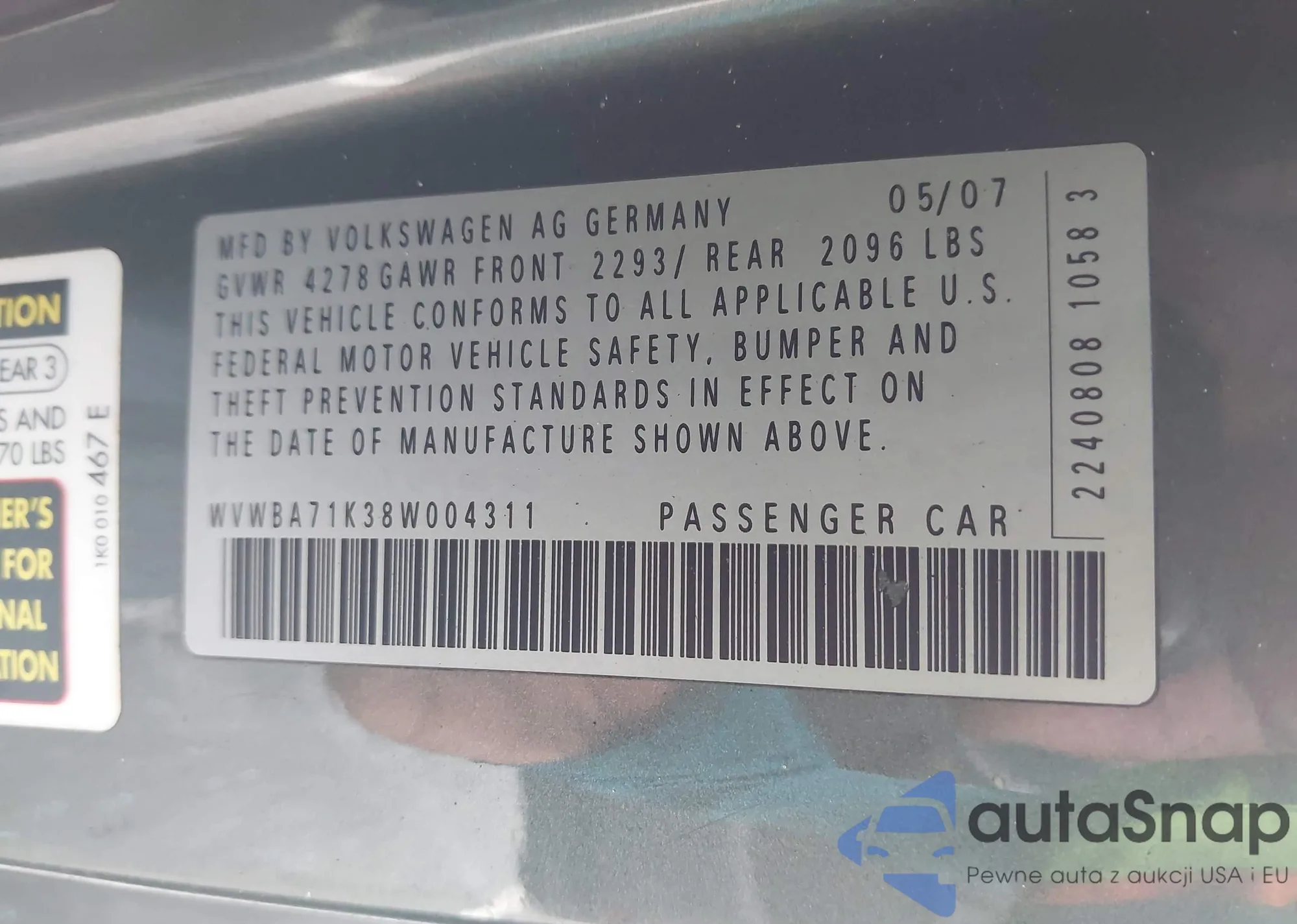• VIN WVWBA71K38W004311