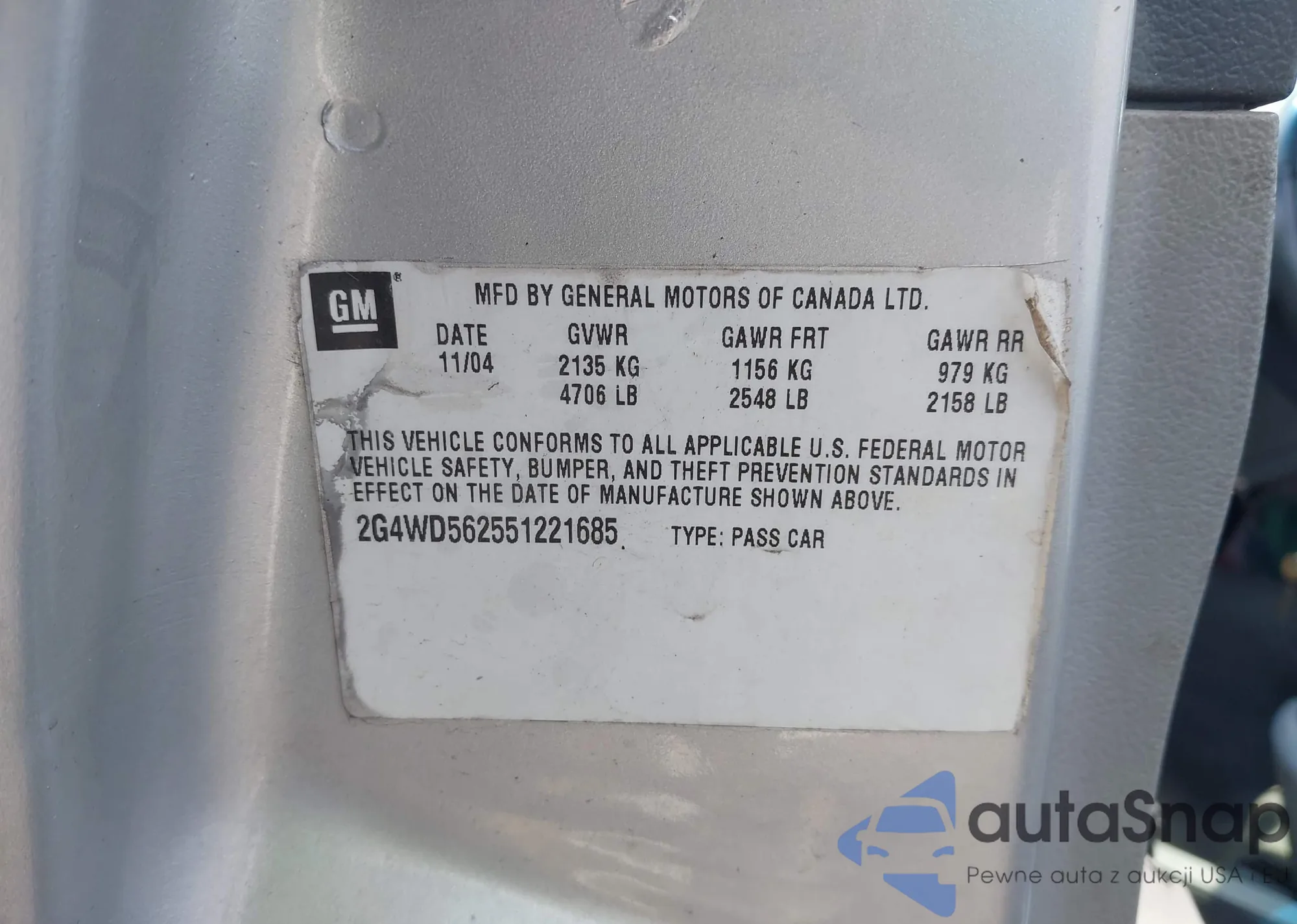 • VIN 2G4WD562551221685